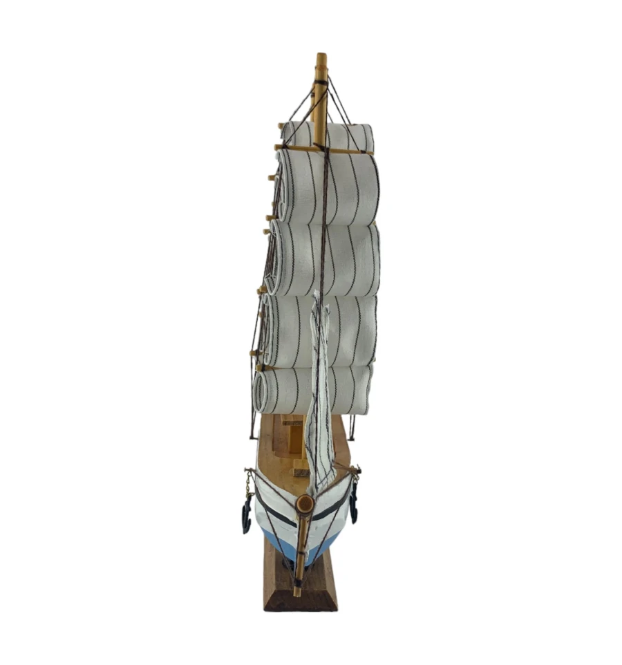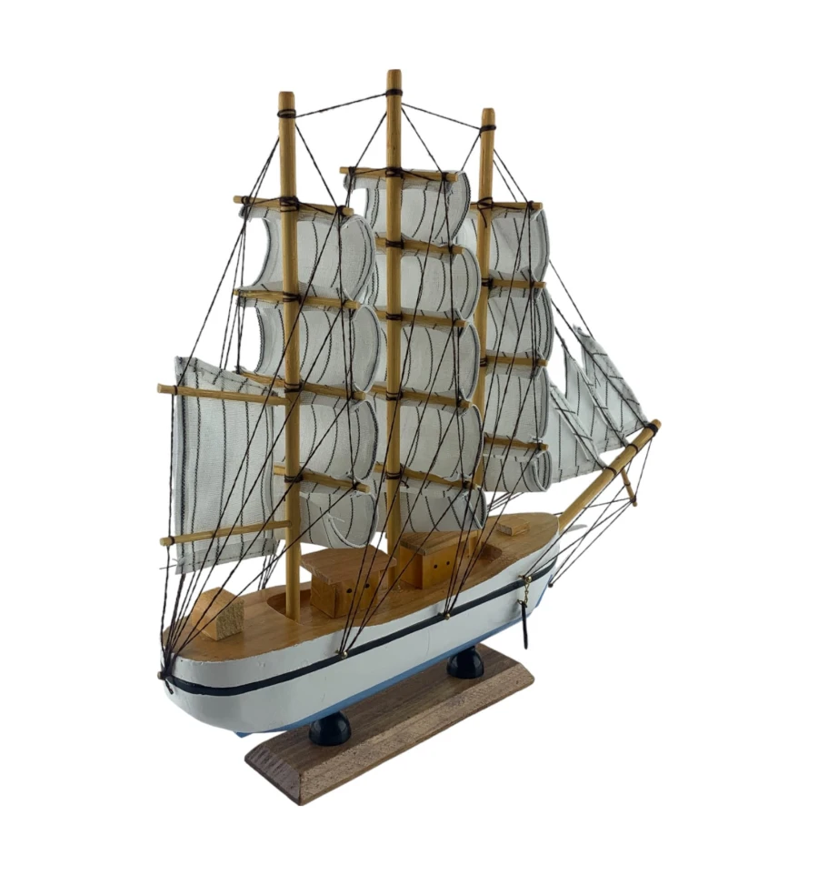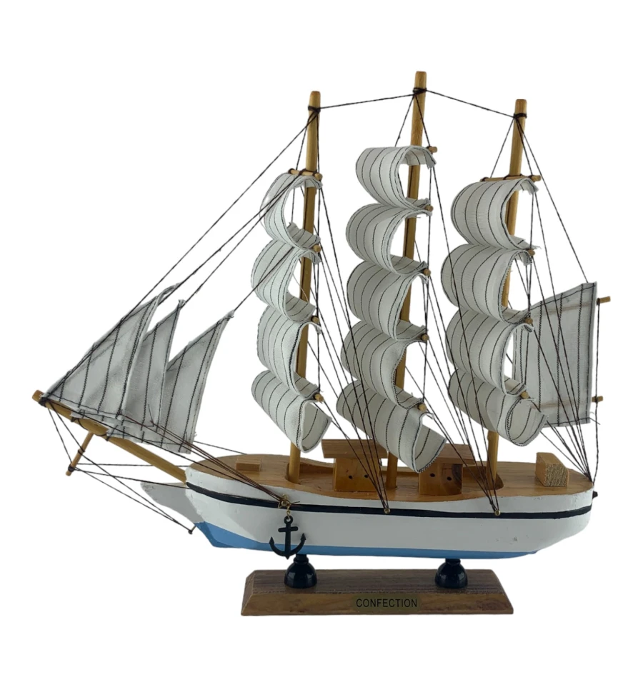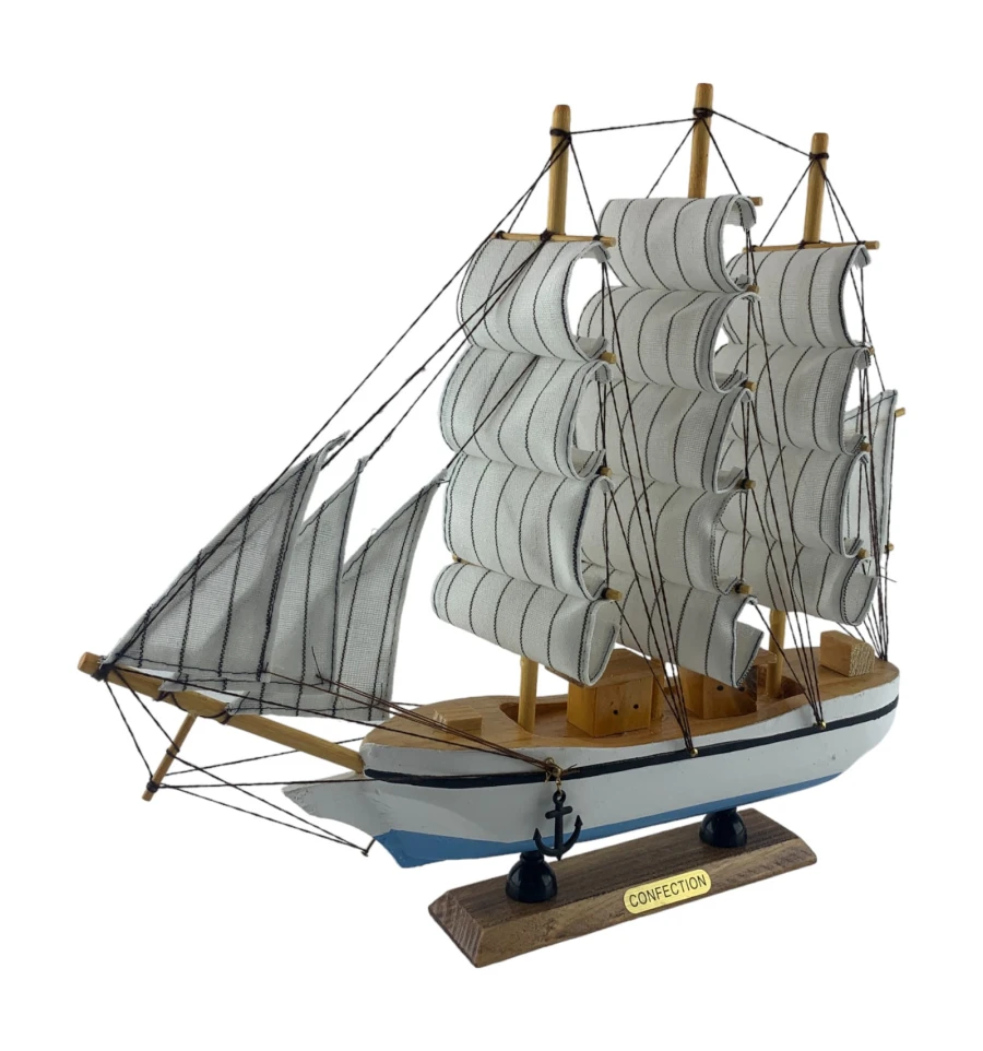 Деревянный парусник на подставке. Этот элегантный парусник - настоящий символ свободы и мечты о далеких морских путешествиях. Белого цвета с черной полосой и голубой снизу , со светлыми парусами призывает к новым горизонтам и приключениям. Парусник на подставке станет не только изысканным элементом вашего интерьера, но и напоминанием о бескрайних океанах и незабываемых моментах. Его компактные размеры делают его идеальным для размещения на столе, полке или в другом уголке вашего дома. Два якоря придают этой композиции дополнительный морской шарм и символизируют стабильность и верность своим идеалам. Этот парусник также может стать замечательным подарком для всех, кто разделяет страсть к морским темам и мечтает о приключениях на широких водах. Он символизирует свободу, мечты и бесконечные возможности. Погрузитесь в мир морской романтики с нашим парусником. Он будет напоминать вам о великих путешествиях и дарить вдохновение каждый день.