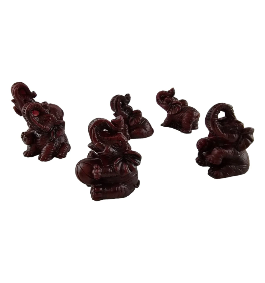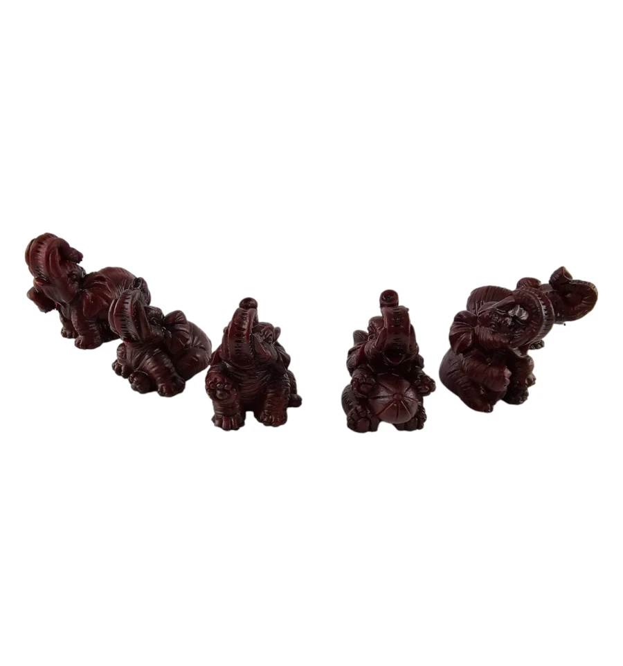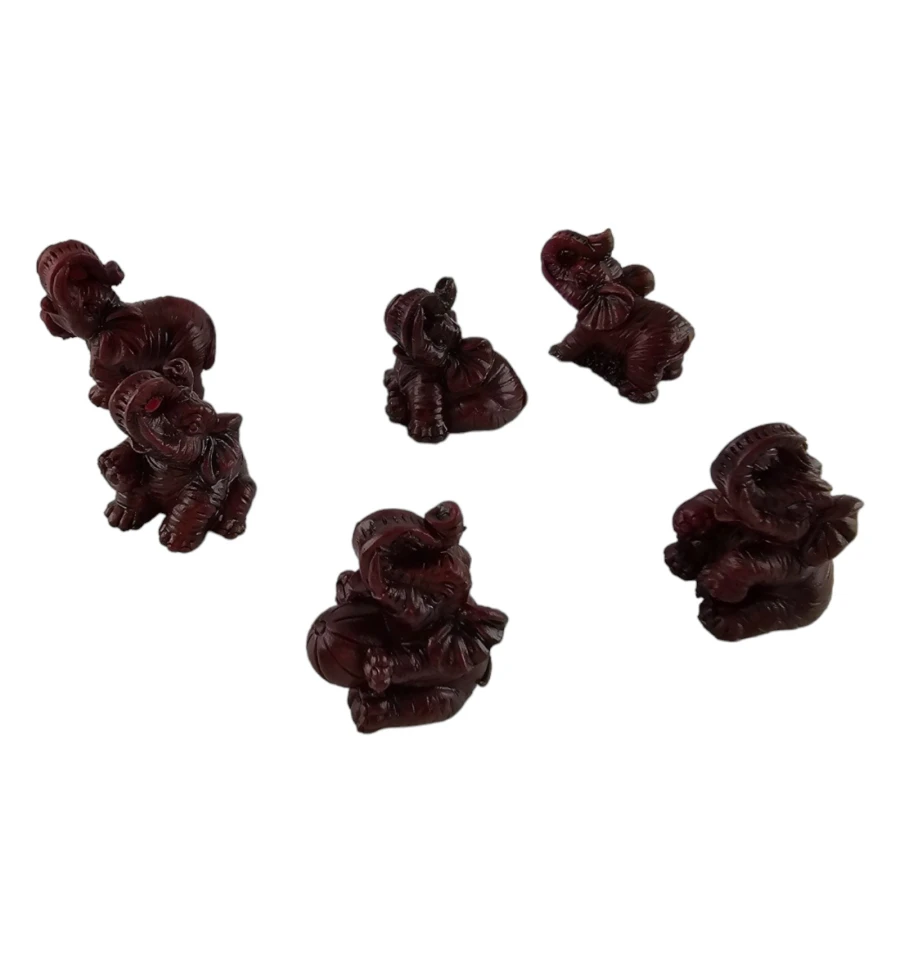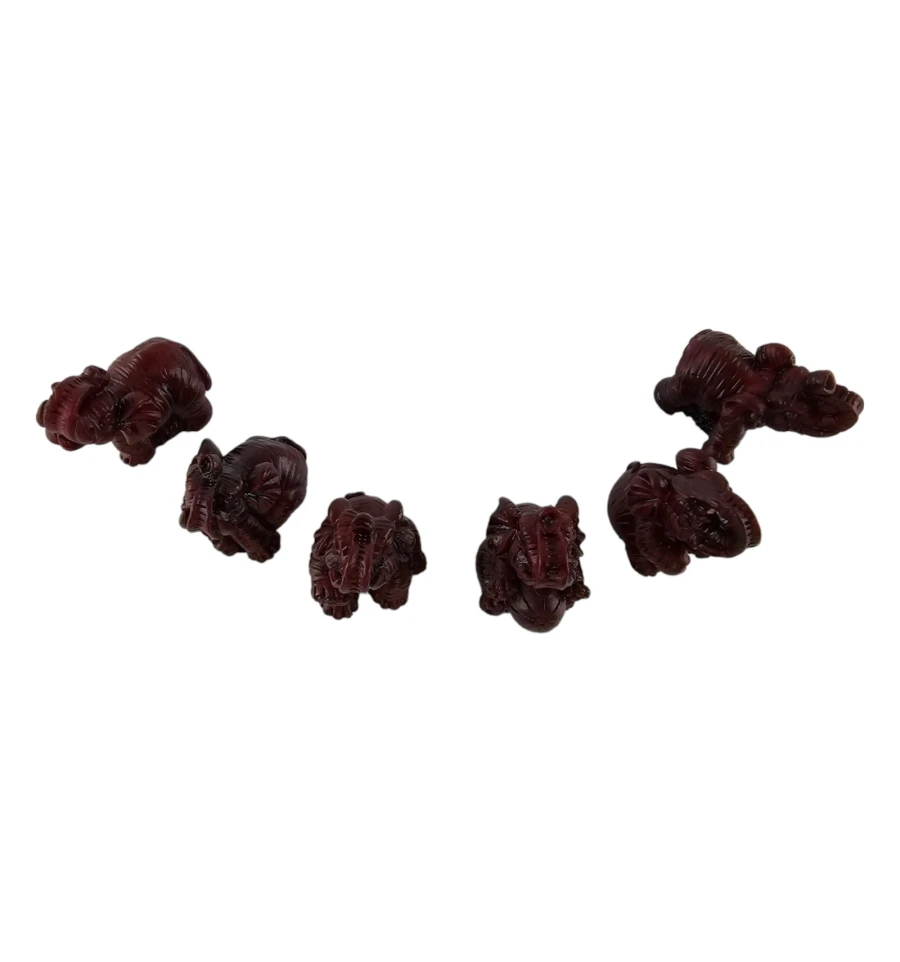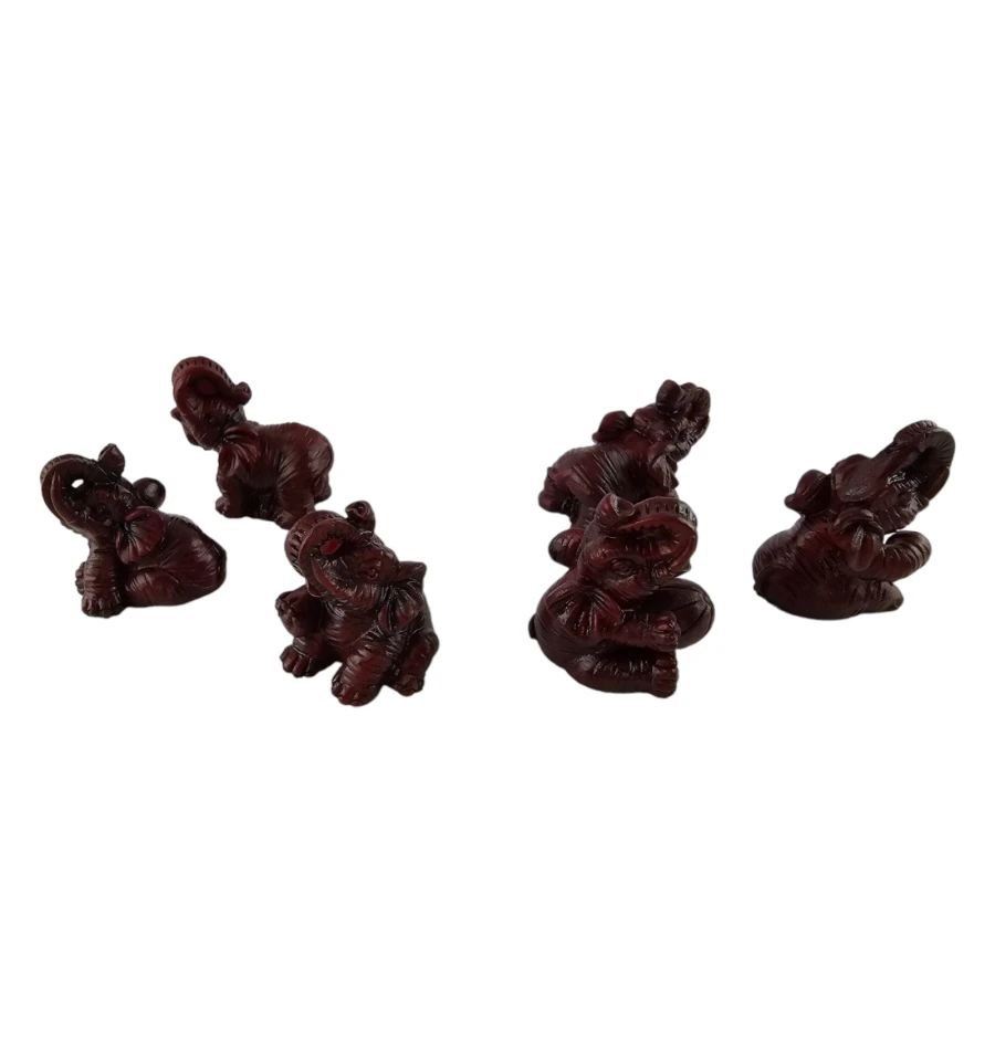 Насладитесь красотой и символизмом в этом наборе из шести уникальных статуэток слонов, великолепно выполненных из полимера коричнево- бордового цвета. Каждая фигурка в этом наборе имеет свой собственный неповторимый дизайн, что делает его не только прекрасным украшением, но и уникальным коллекционным предметом.