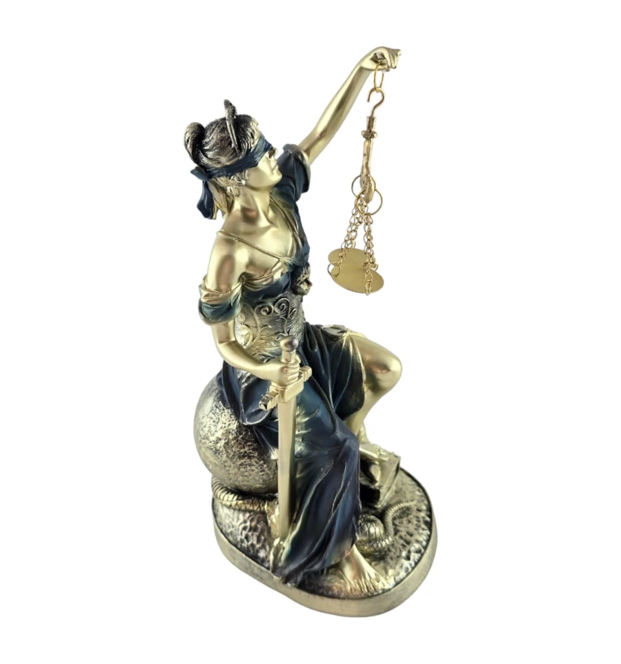 Представляем вам величественную статуэтку Фемиды - символа справедливости и правосудия. Эта красивая и оригинальная статуэтка идеально передает мощь и власть богини правосудия.