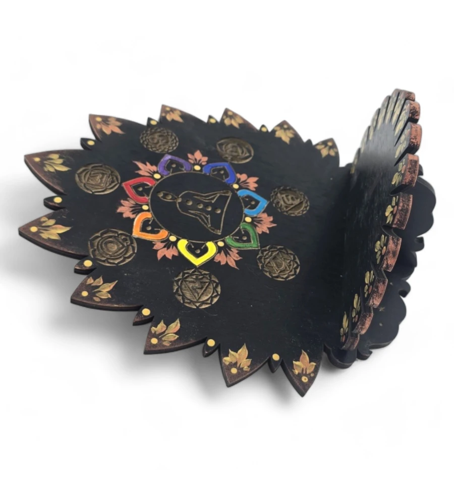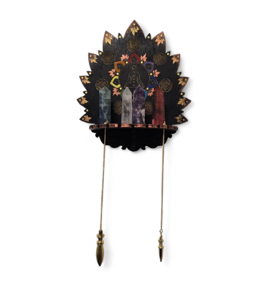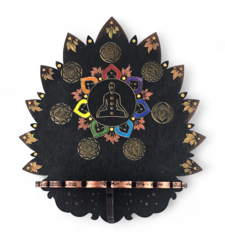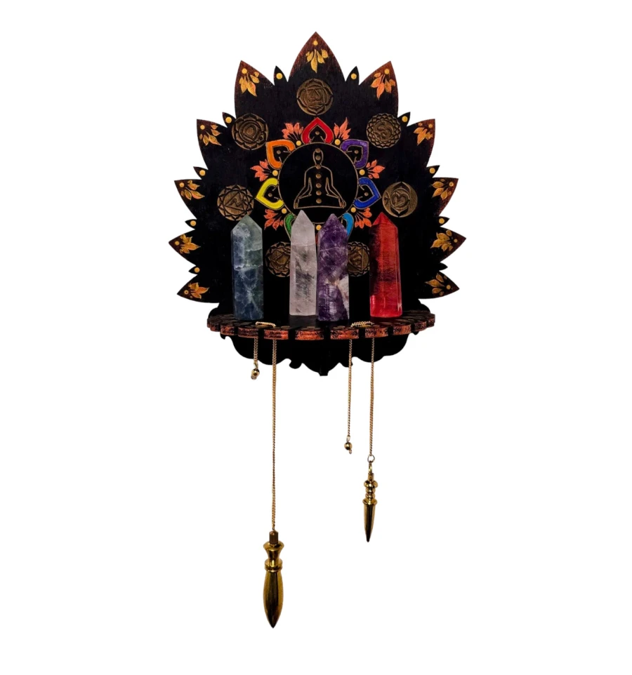 Обогатите ваш дом неповторимым эстетическим аксессуаром - нашей полочкой " 7 Чакр" для хранения кристаллов и маятников. Этот изысканный элемент интерьера, в классическом черном исполнении с изображением чакр, создан с заботой о вашем внутреннем гармонии и благополучии.