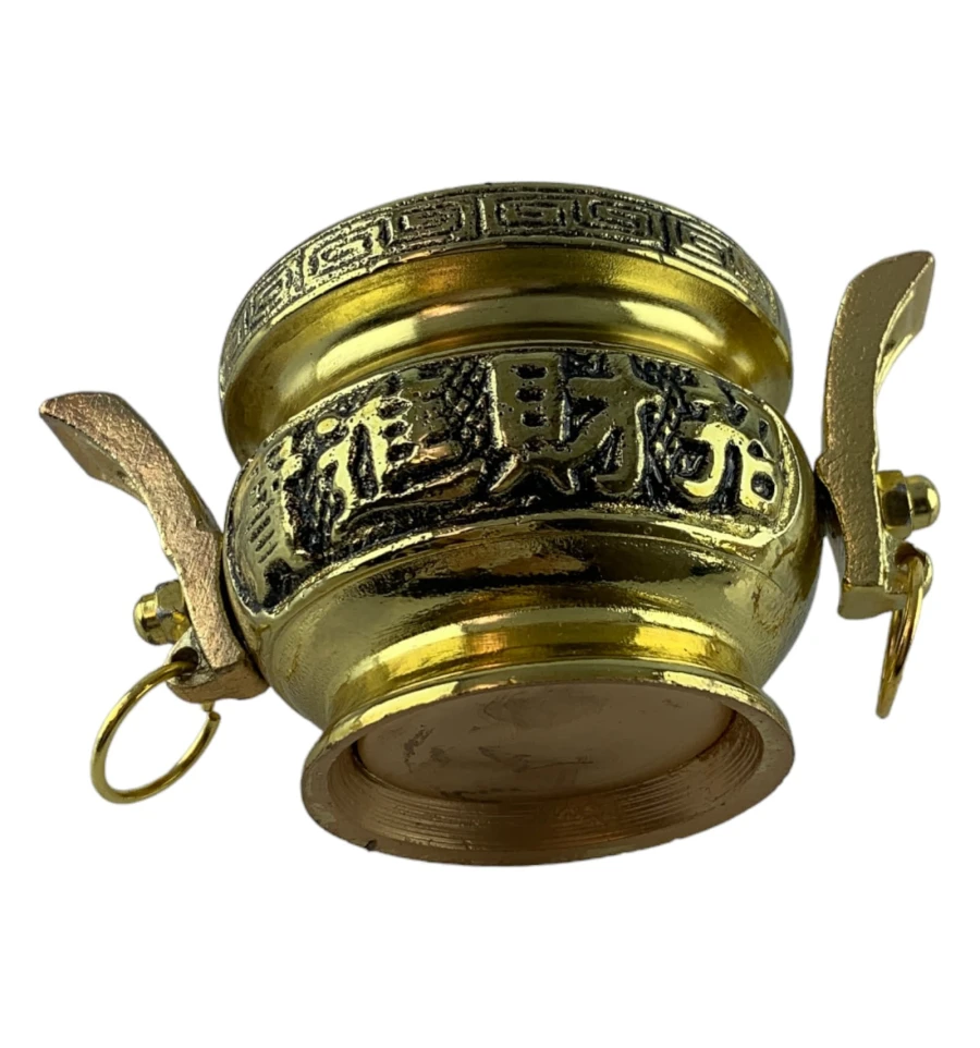 По бокам курильницы размещены два удобных ушка-ручки, которые делают ее легко переносной и удобной в использовании. На одной стороне курильницы изображен дракон - символ силы, могущества и защиты в китайской культуре. На другой стороне размещены иероглифы, придающие курильнице загадочный и экзотический вид, воспринимая ее как символ таинственности.