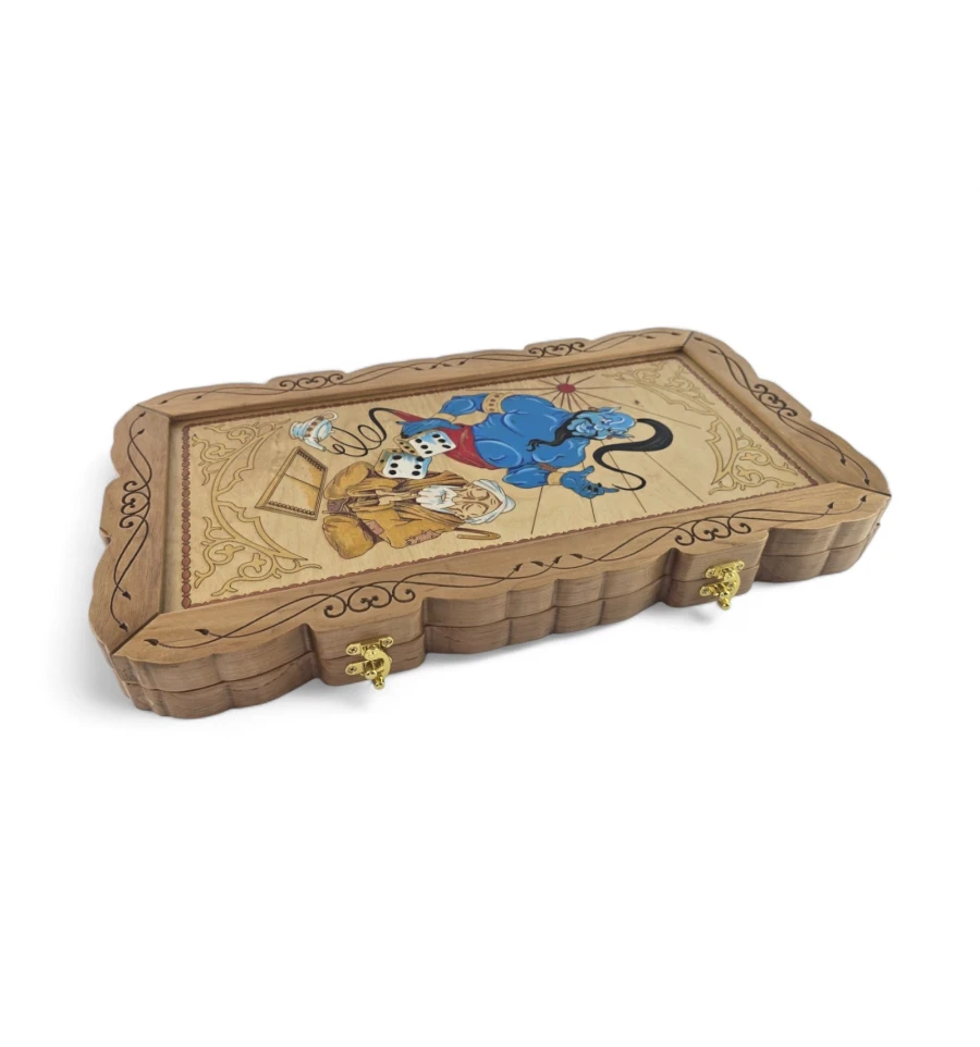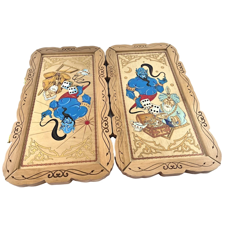 Погрузитесь в волшебный мир восточных легенд с нашими крафтовыми деревянными нардами "Джин". Каждая доска создана вручную с использованием высококачественного дерева и украшена мастерской резьбой и росписью.