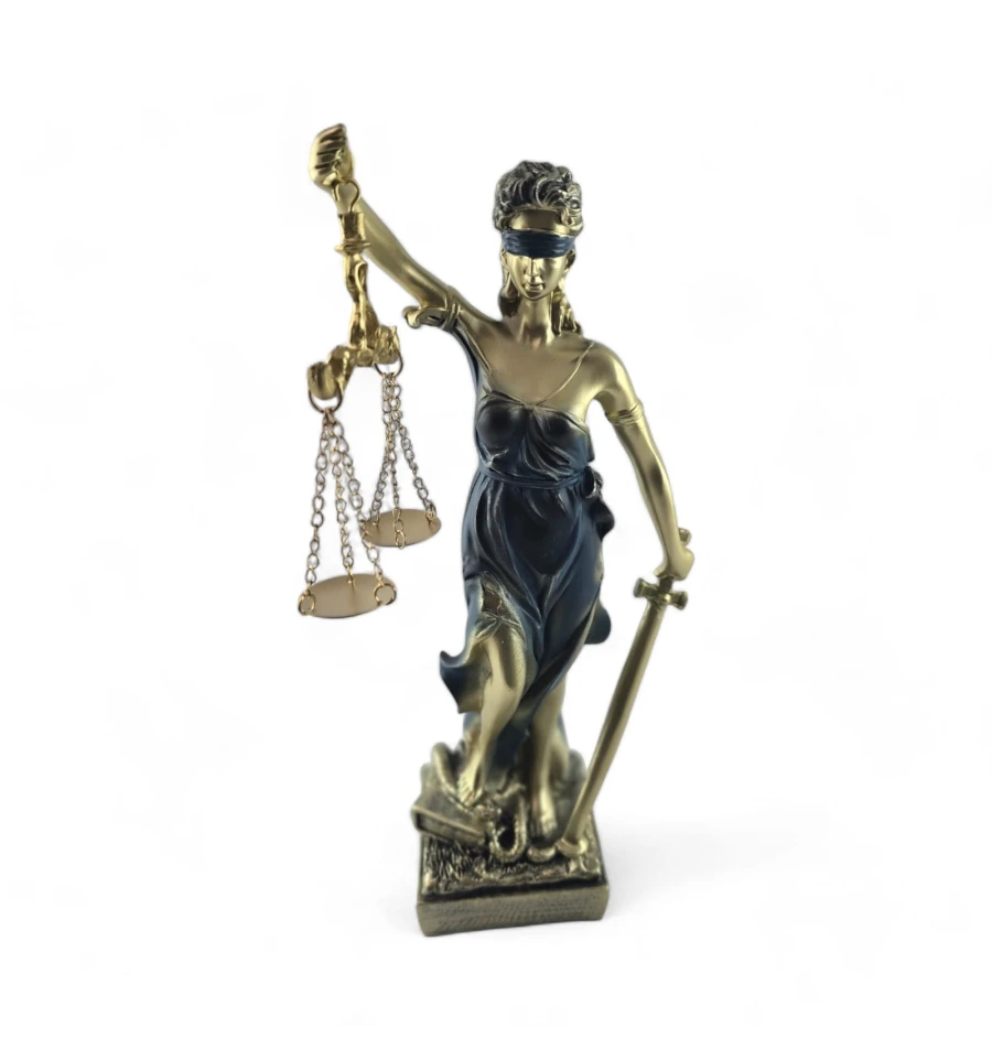 Высотой 345 мм, шириной 140 и глубиной 100 мм, эта статуэтка стоит на квадратном постаменте размером 85х 85 мм, что придает ей элегантности и статусности. Она создана для того, чтобы напоминать нам о важности справедливости и законности в нашей жизни, а также о необходимости сохранения баланса и гармонии в обществе. Пусть эта статуэтка Фемиды всегда стоит в центре вашего пространства, напоминая вам о ценностях, которые она воплощает.