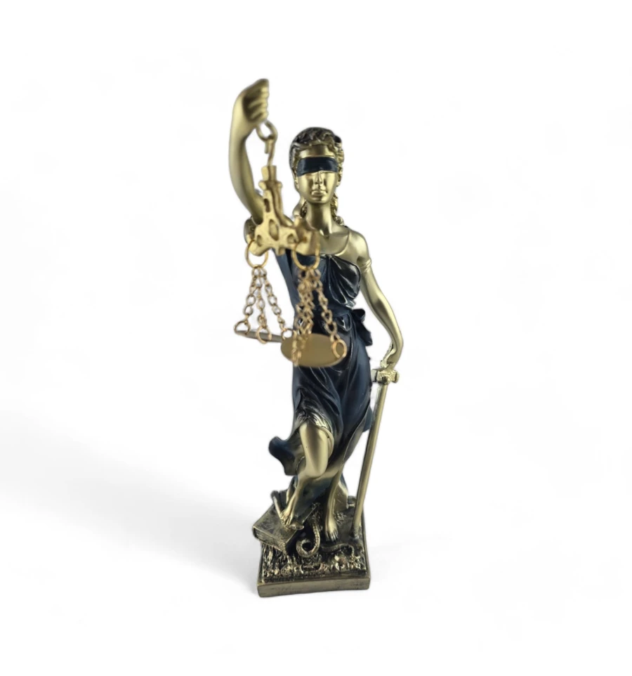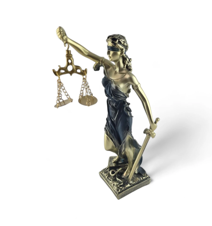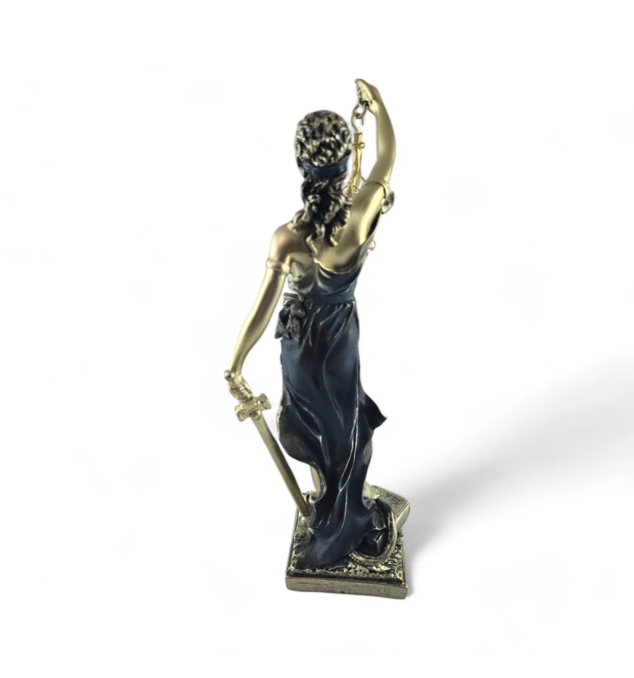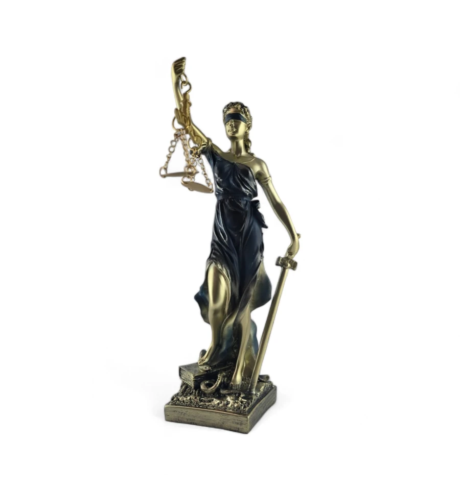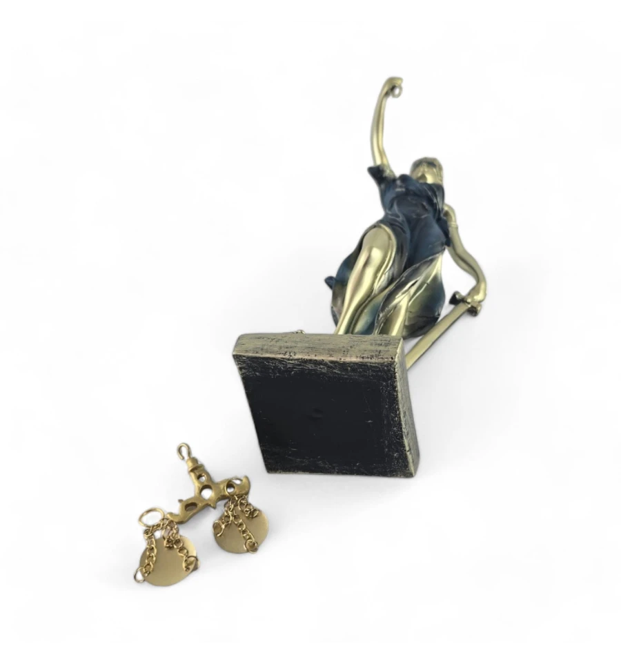 Высотой 415 мм, шириной 160 и глубиной 120 мм, эта статуэтка стоит на квадратном постаменте размером 100х 100 мм, что придает ей элегантности и статусности. Она создана для того, чтобы напоминать нам о важности справедливости и законности в нашей жизни, а также о необходимости сохранения баланса и гармонии в обществе. Пусть эта статуэтка Фемиды всегда стоит в центре вашего пространства, напоминая вам о ценностях, которые она воплощает.