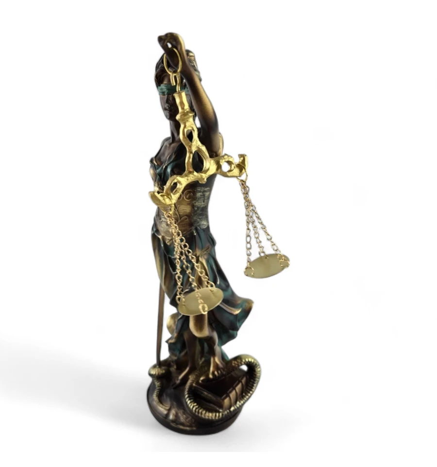 Высотой 310 мм, шириной 130 и глубиной 100 мм, эта статуэтка стоит на постаменте диаметром 90 мм, что придает ей элегантности и статусности. Она создана для того, чтобы напоминать нам о важности справедливости и законности в нашей жизни, а также о необходимости сохранения баланса и гармонии в обществе. Пусть эта статуэтка Фемиды всегда стоит в центре вашего пространства, напоминая вам о ценностях, которые она воплощает.