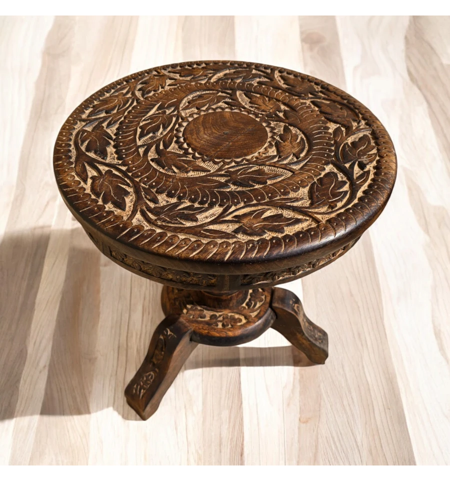 Этот резной стол из мангового дерева идеально подходит для добавления экзотического шарма в ваш интерьер. Он может использоваться как декоративный элемент в гостиной, спальне или любом другом пространстве вашего дома. Также он отлично подходит для создания комфортного места для сидения.