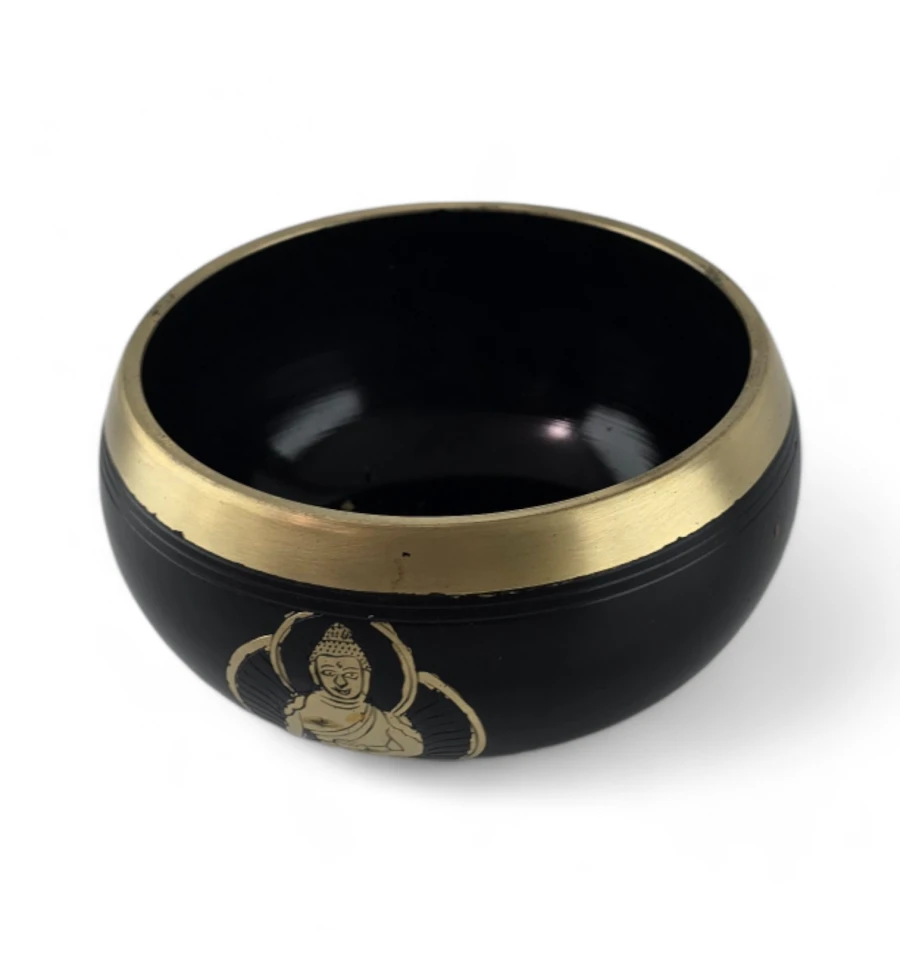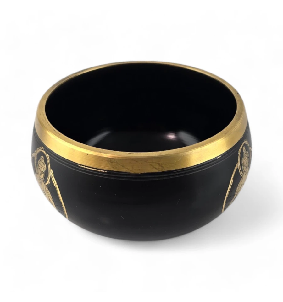Чаша сделана из металла, который покрыт черной эмалью. Золотистое изображение Будды придает изделию благородный вид и подчеркивает его уникальность. Это не просто музыкальный инструмент, но и мощный символ, который может стать центром вашей духовной практики.