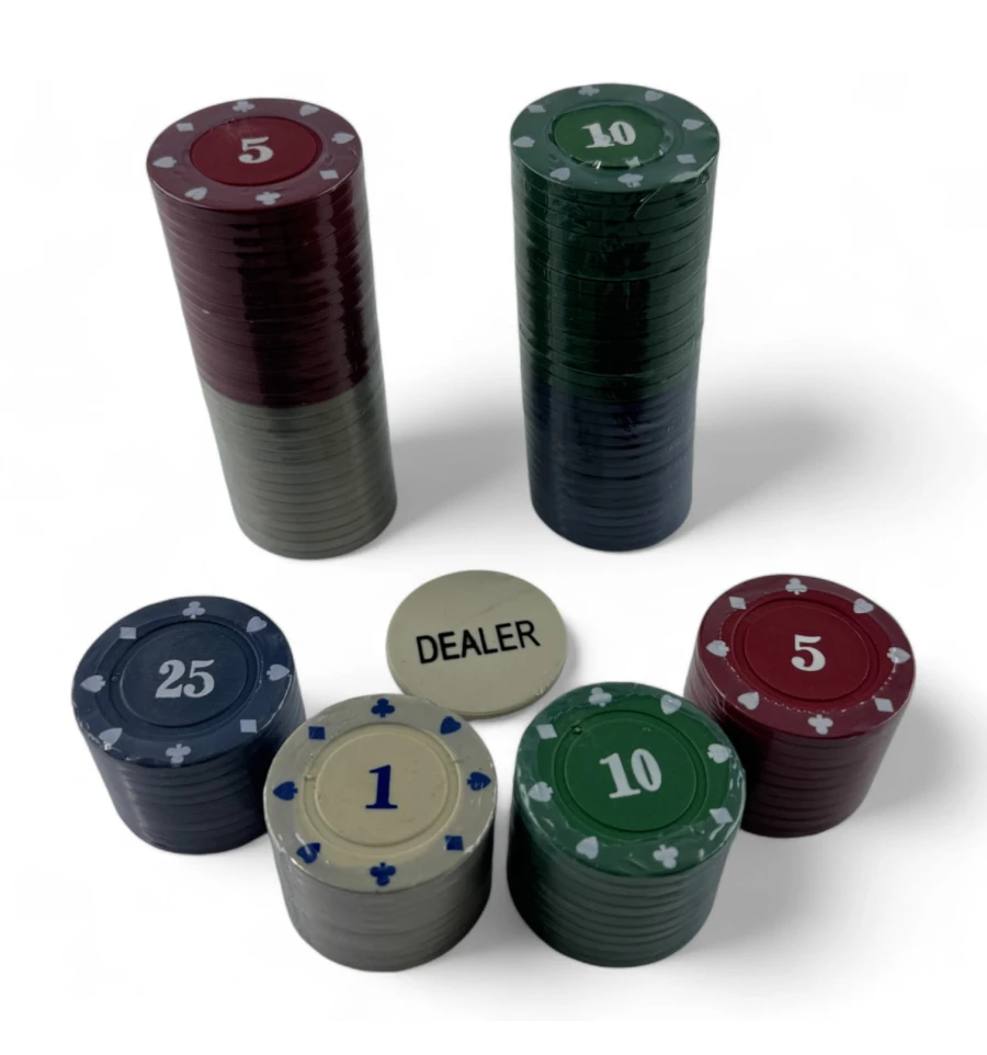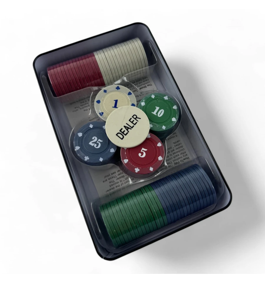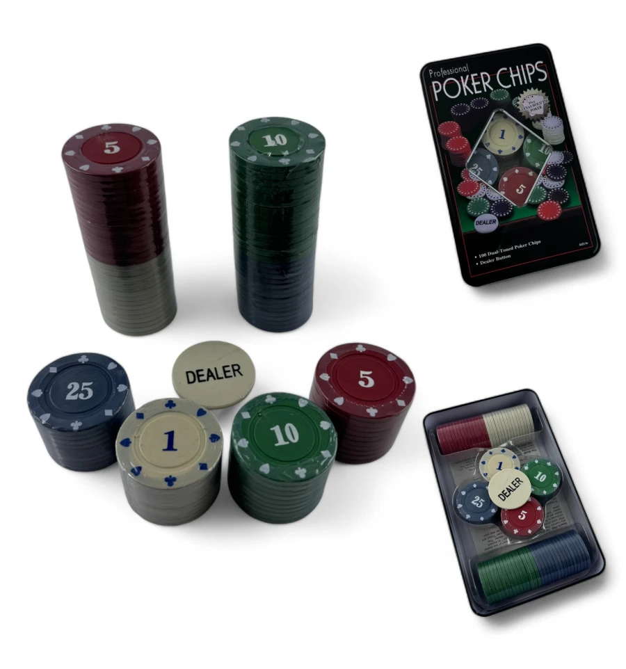 Количество фишек: В набор входит 100 фишек, что идеально подходит для небольших домашних игр.