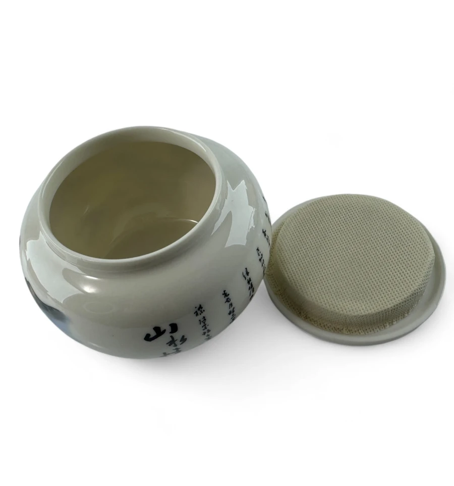 Эта изящная керамическая баночка идеально подходит для хранения чая. Ее округлая форма и плотно прилегающая крышка сохранят свежесть вашего любимого напитка. Оригинальная роспись с пейзажными мотивами в стиле восточной живописи добавляет эстетичности, делая эту баночку не только функциональным, но и декоративным элементом вашей кухни.