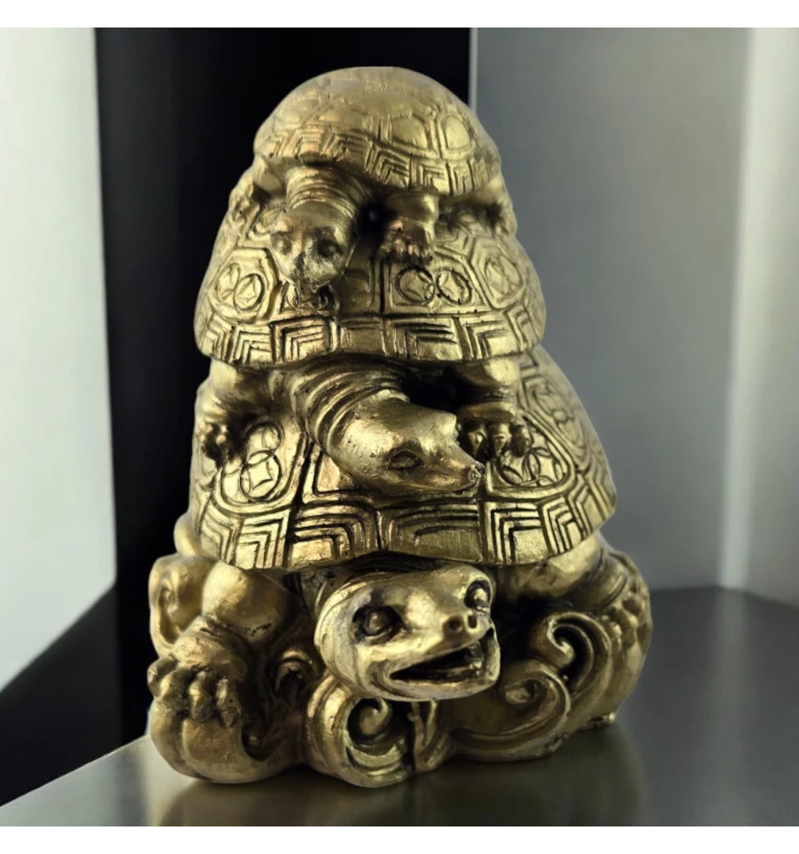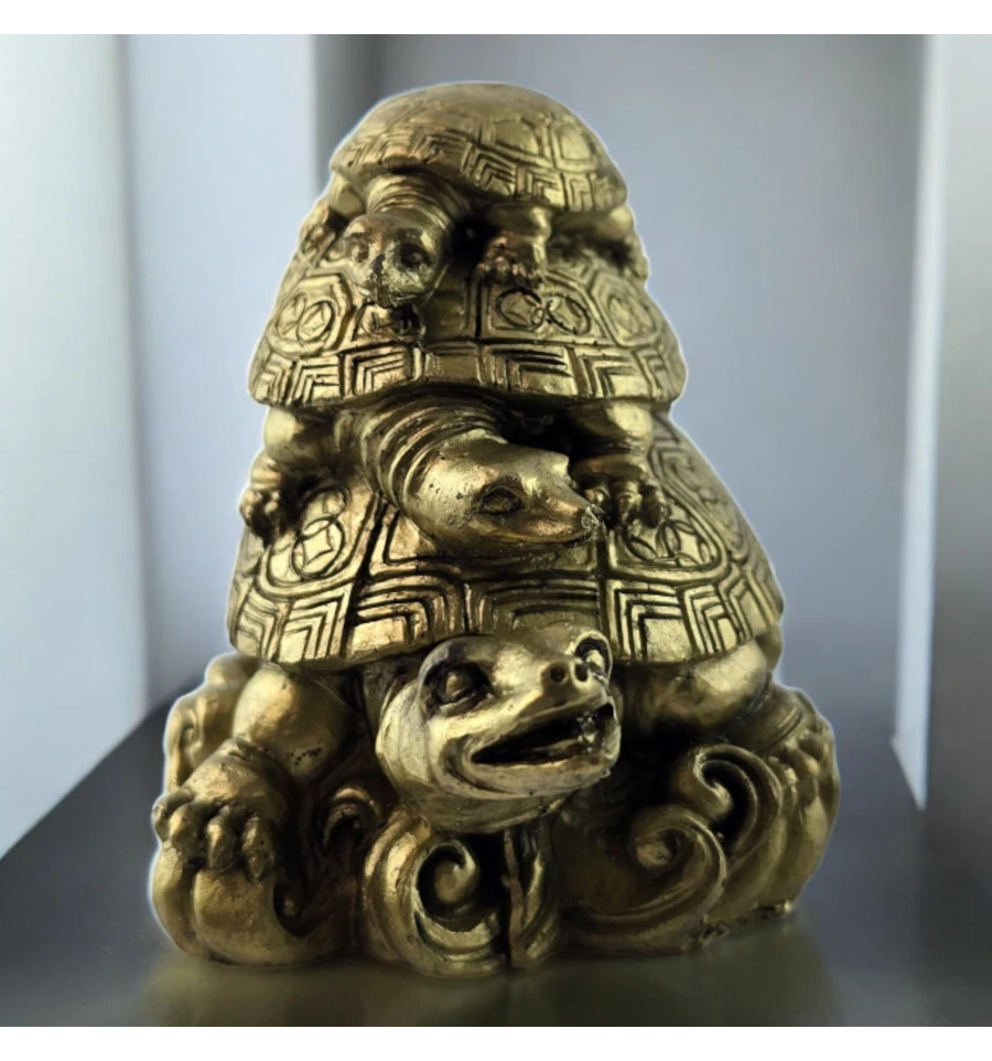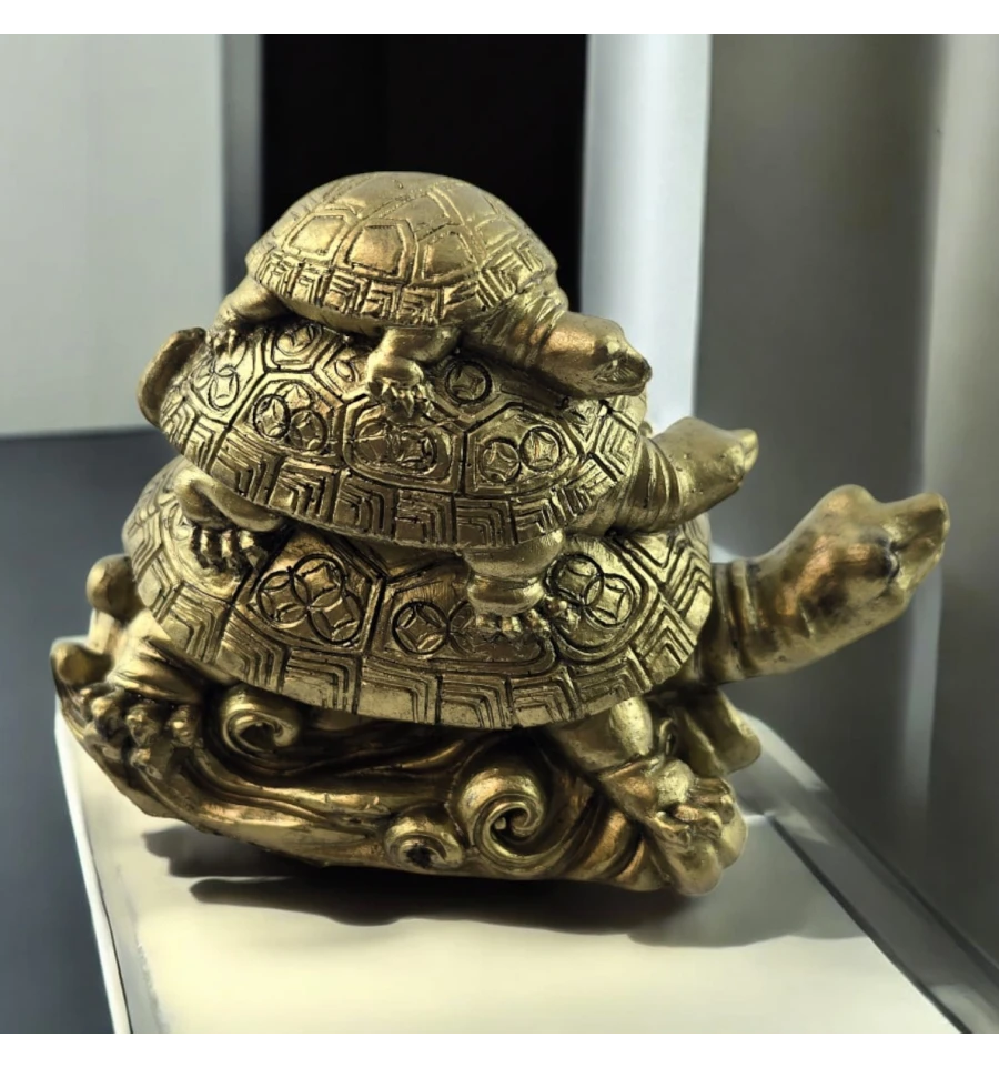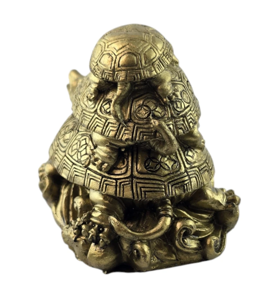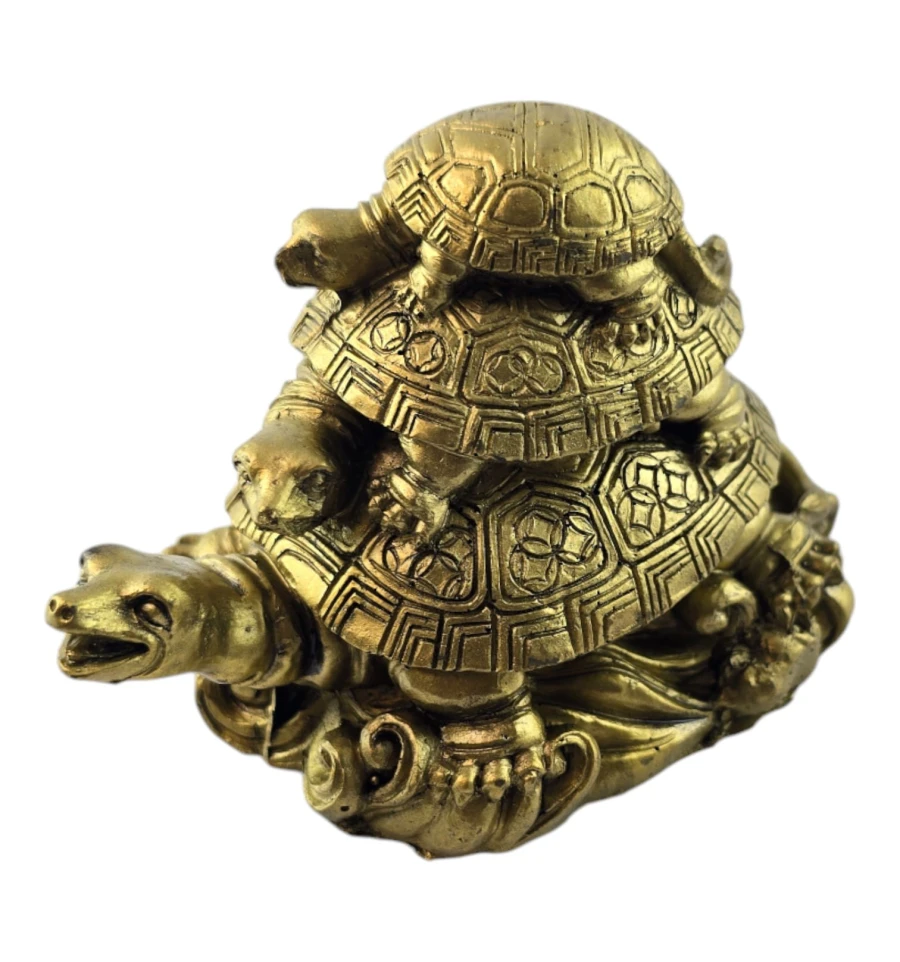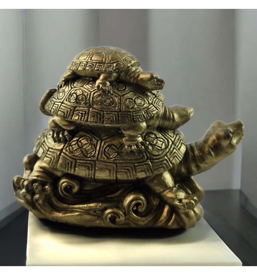 Эта статуэтка изображает трех черепах, расположенных друг на друге, символизируя защиту и поддержку поколений. В китайской культуре черепаха ассоциируется с долголетием и мудростью, а изображение нескольких черепах указывает на укрепление семьи и связь между поколениями. Такая фигурка станет отличным дополнением к вашему дому, привнося атмосферу мира и гармонии.