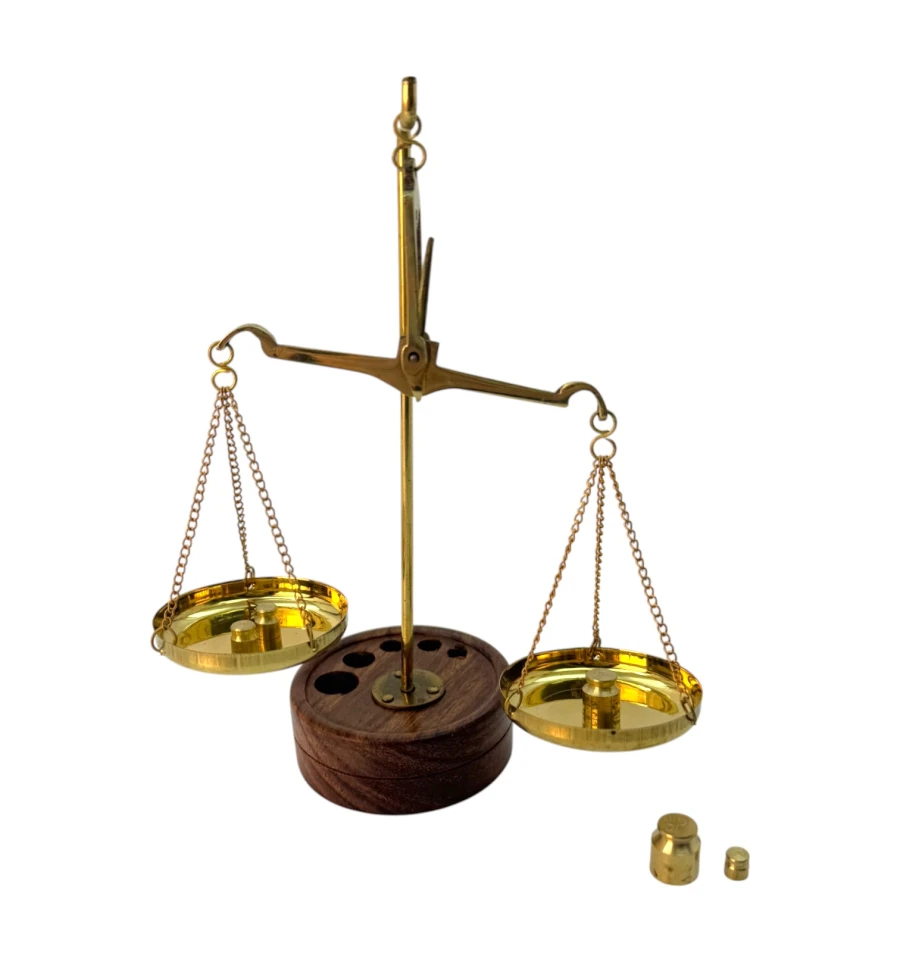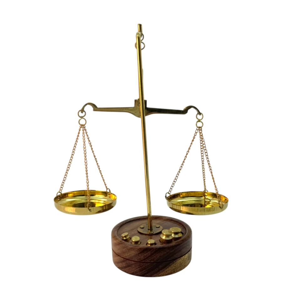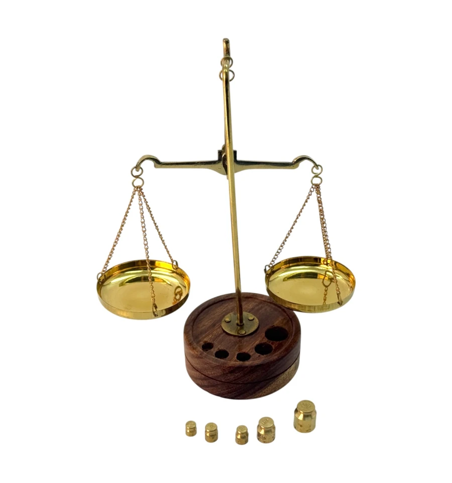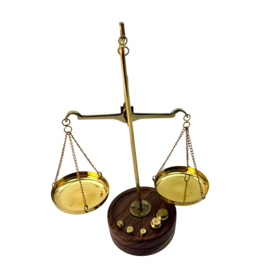Весы бронзовые на деревянной подставке