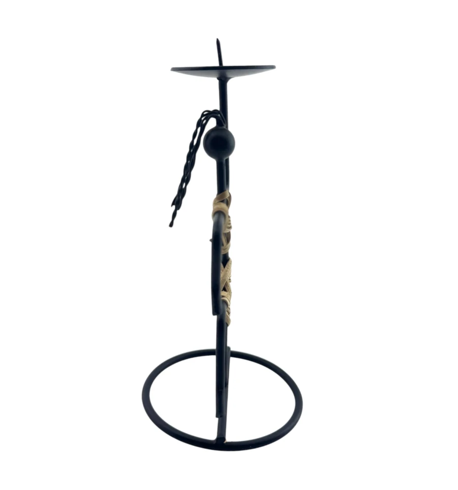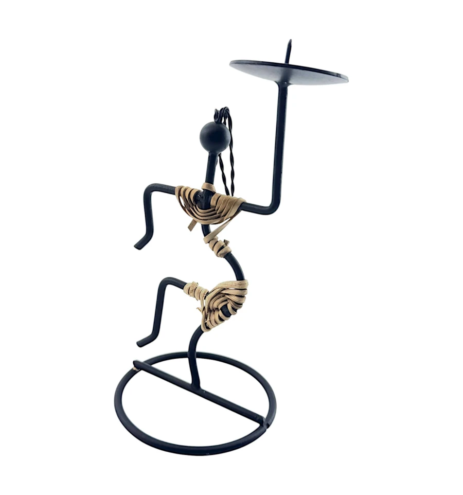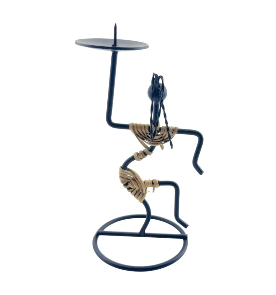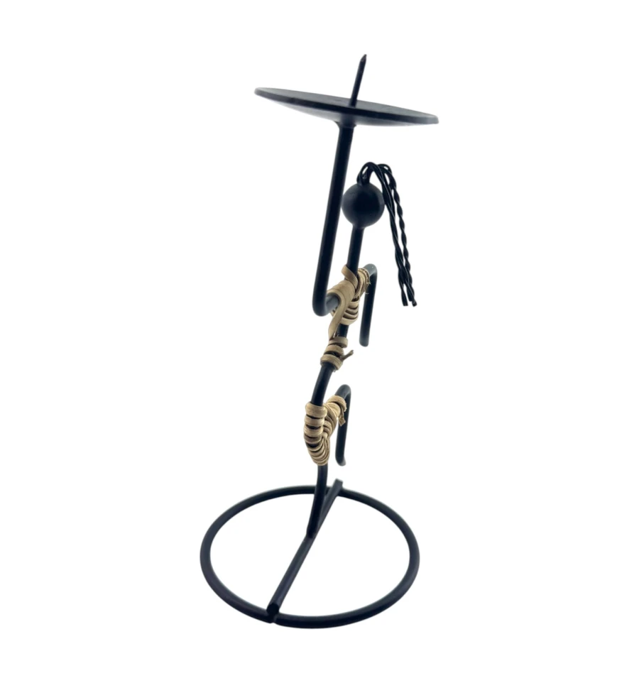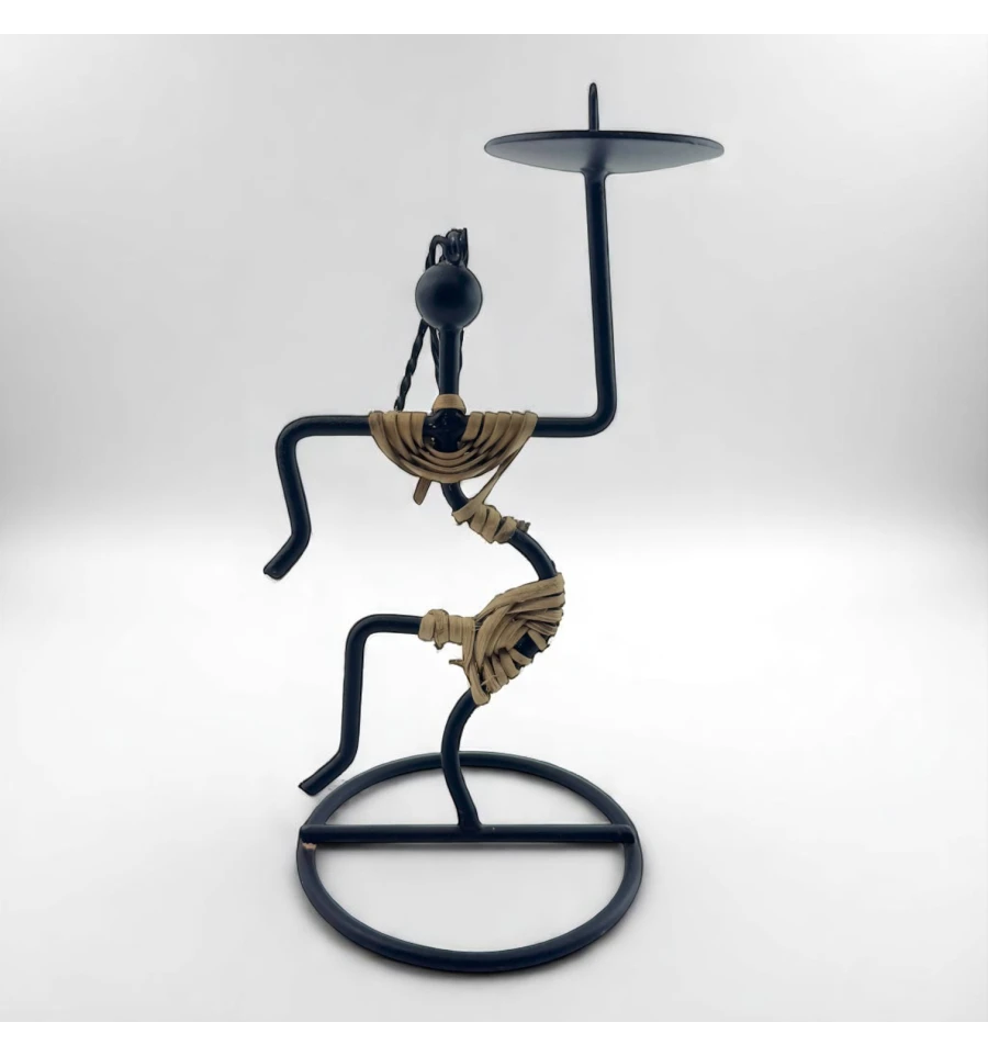 Добавьте в интерьер нотку африканского колорита с этим изящным подсвечником ручной работы. Фигура выполнена из прочного металла в виде женщины в традиционном наряде, украшенной золотистыми акцентами и элементами из ротанга. Лаконичный и выразительный дизайн делает его не просто подставкой для свечи, а настоящим арт-объектом.