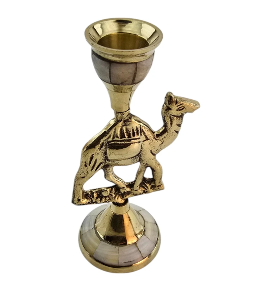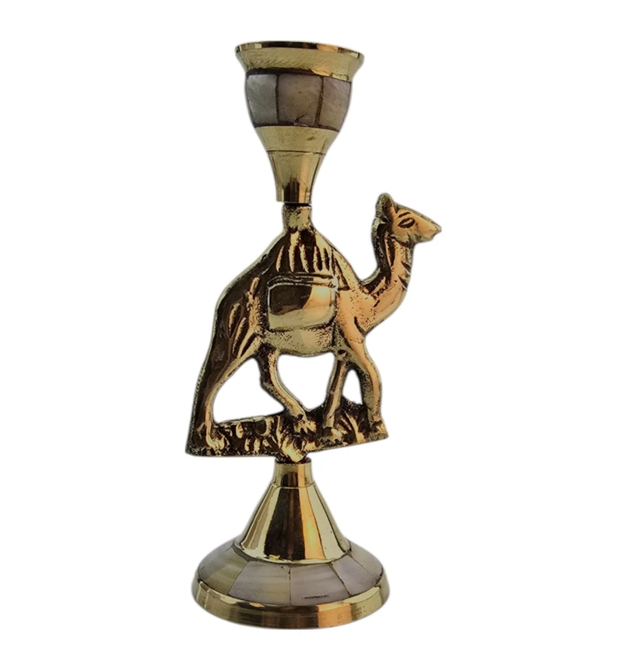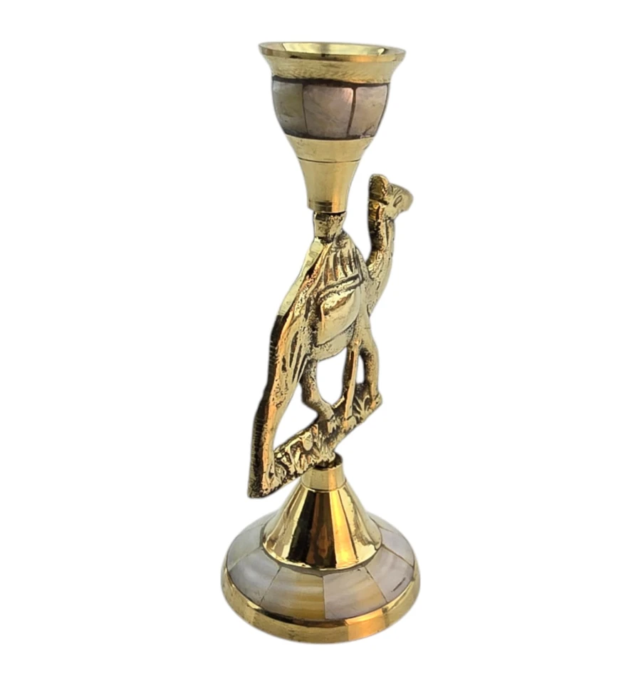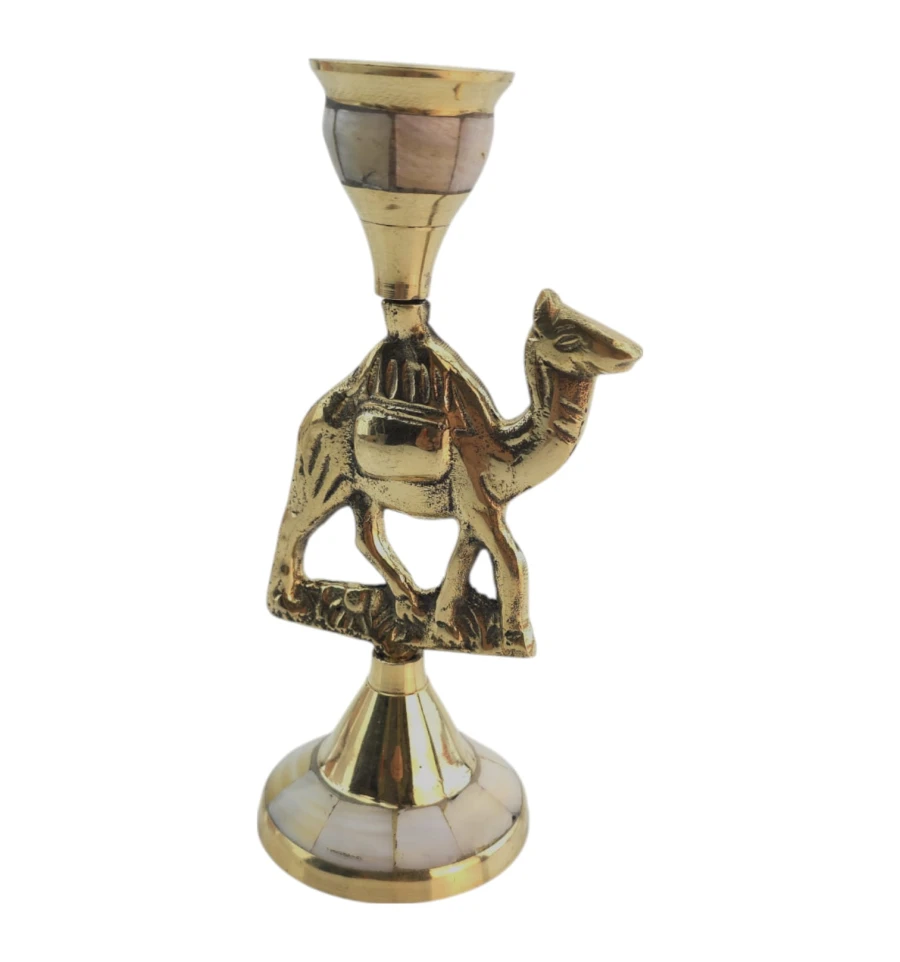 Декоративный подсвечник в виде верблюда изготовлен вручную из латуни с инкрустацией из перламутра. Верблюд символизирует выносливость, путь и восточную мудрость, благодаря чему изделие может стать не только практичным аксессуаром, но и символичным подарком.
