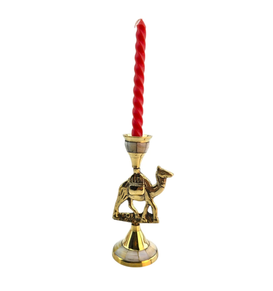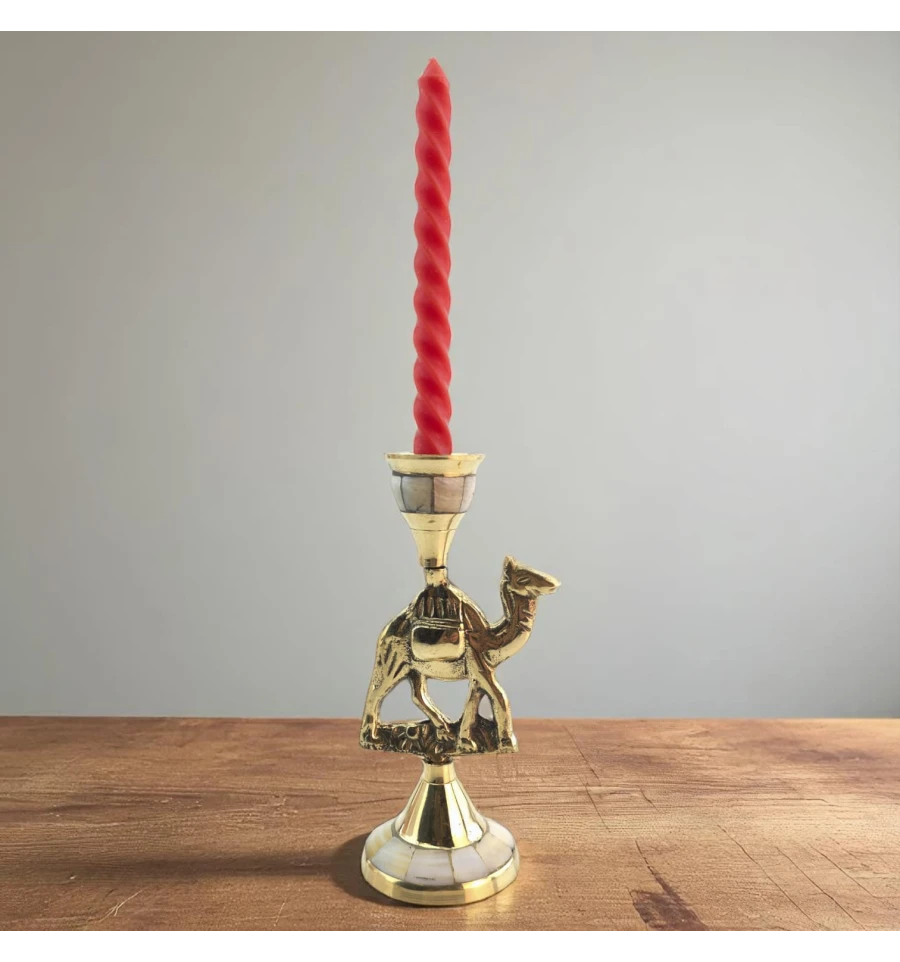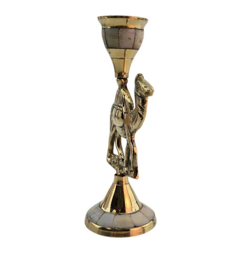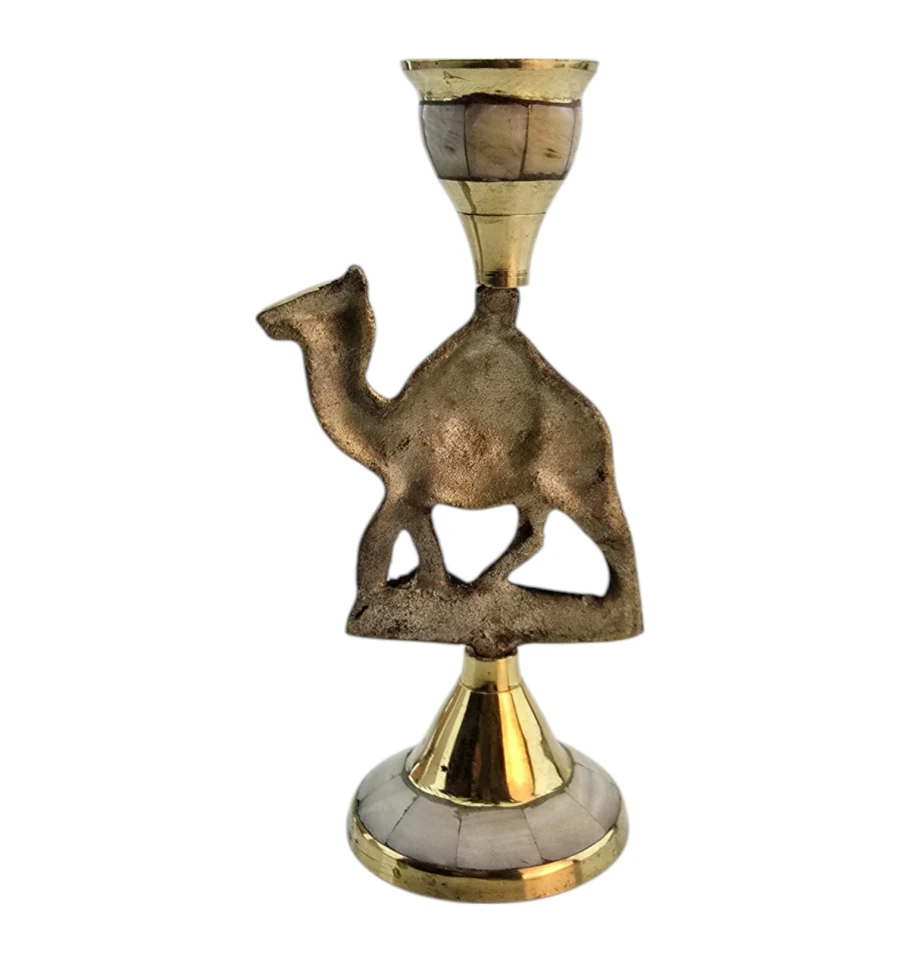 Декоративный подсвечник в виде верблюда изготовлен вручную из латуни с инкрустацией из перламутра. Верблюд символизирует выносливость, путь и восточную мудрость, благодаря чему изделие может стать не только практичным аксессуаром, но и символичным подарком.