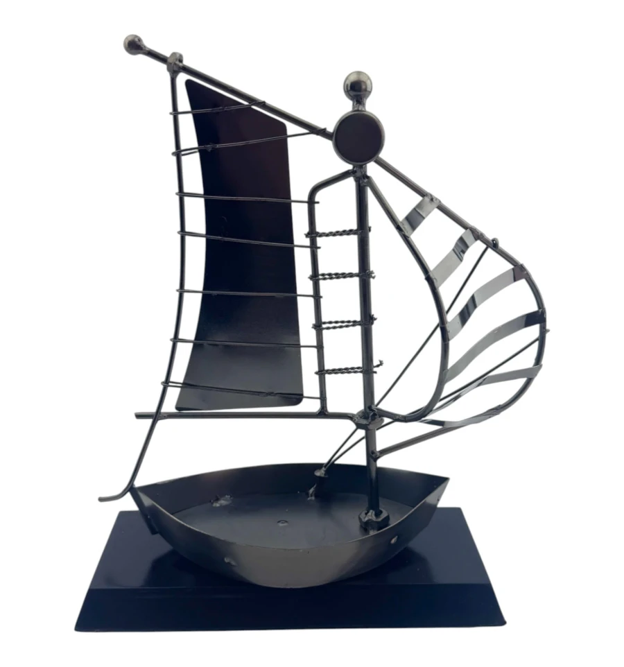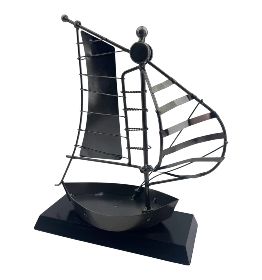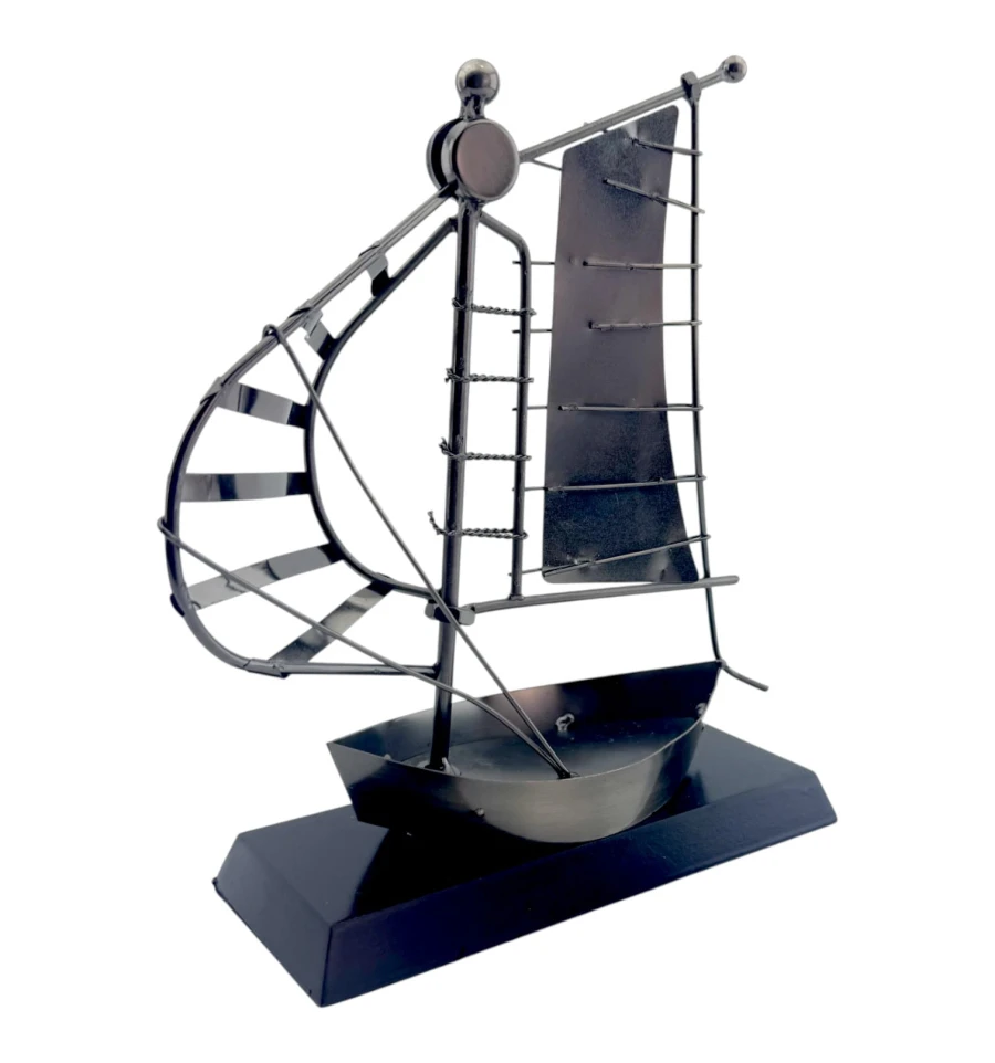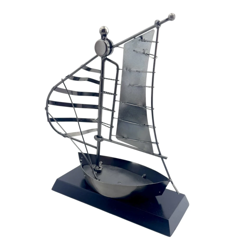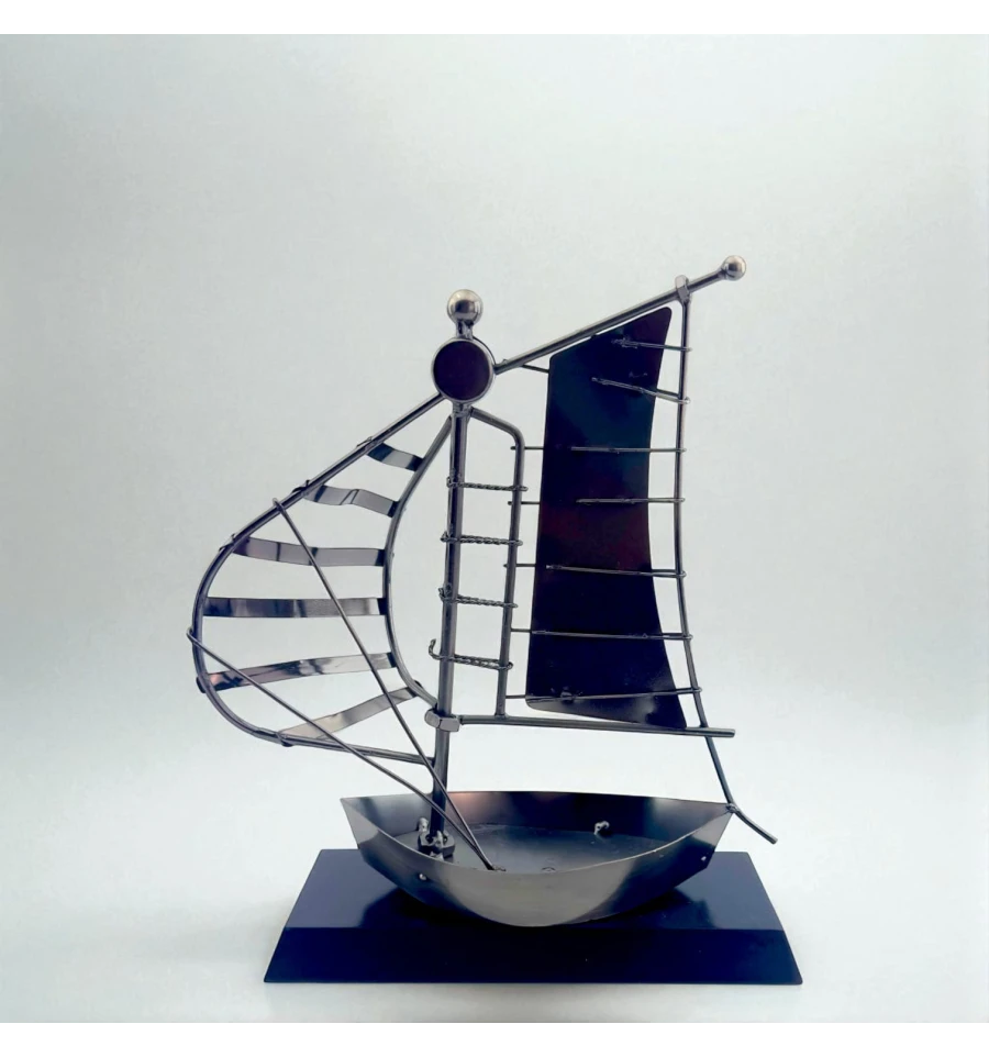 Техно-арт "Парусник" — необычное декоративное изделие, сочетающее эстетику морской тематики с индустриальным стилем. Выполнен в техно-арте: парусник собран из металлических деталей, имитирующих механизмы, шестерни и элементы конструктора.