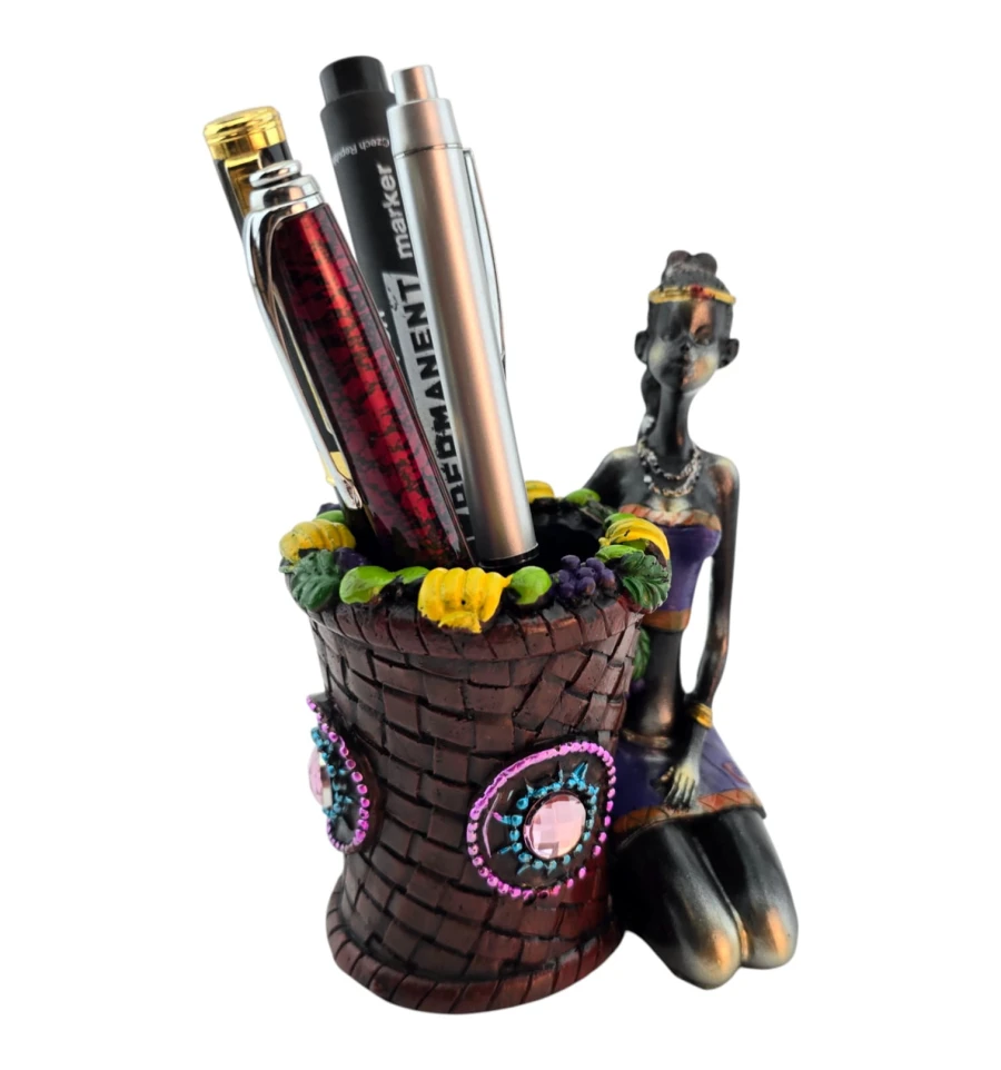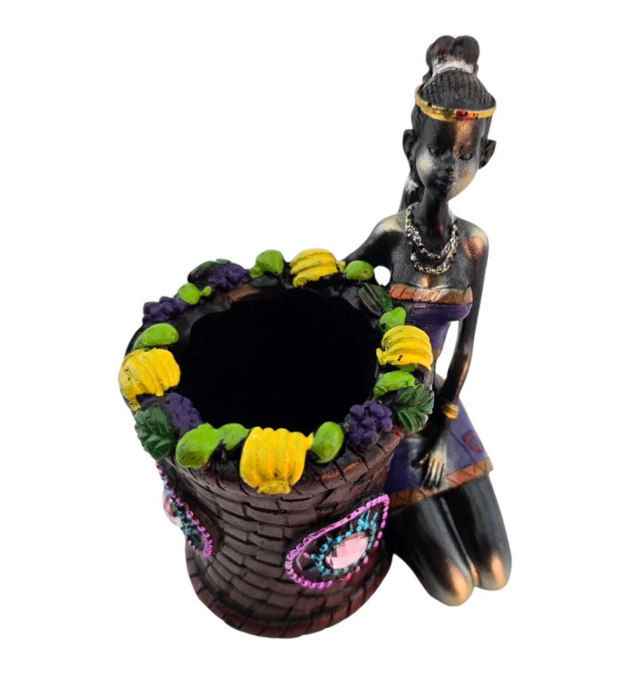 Африканка с корзиной, подставка под ручки (12.5×11.5×7 см)