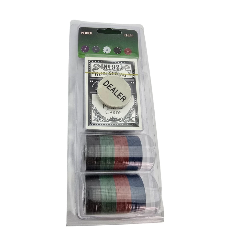 Комплектация: фишки 40 шт + колода 54 карты + жетон Dealer 1 шт