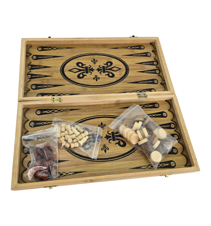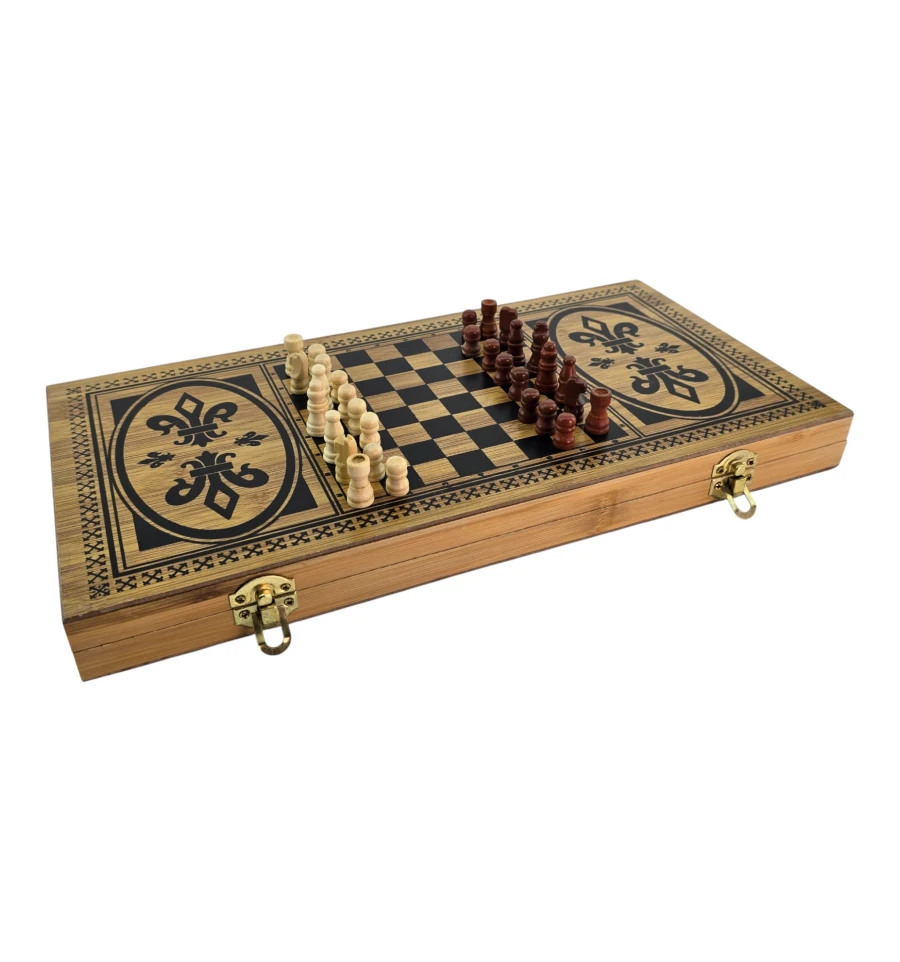 шахматы, шашки, нарды, набор 3 в 1, бамбуковая доска, деревянные фигуры, настольная игра, дорожный набор, семейная игра, развитие логики, складная доска, игры для дома, игровые кости