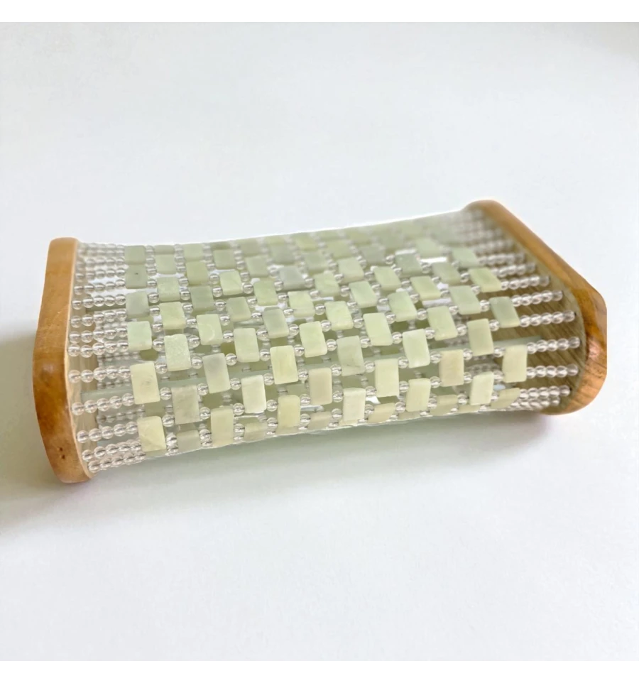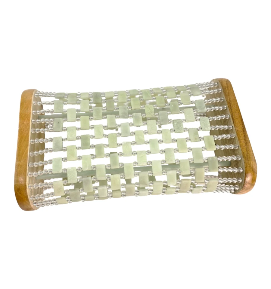 Настольная массажная подушка для шеи и поясницы из натуральных пластин нефрита, собранных на прочных нитях между двумя деревянными бортами. Холодный камень мягко массирует и помогает снять напряжение после работы или поездки. Удобно использовать дома, в офисе или в спа-зоне: подкладывайте под шею/поясницу лёжа или сидя, делайте короткие паузы для релакса.