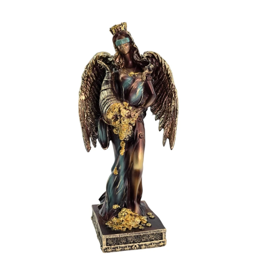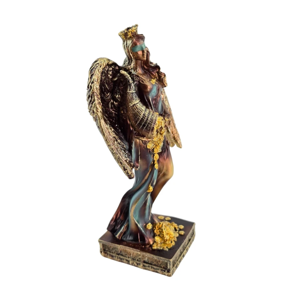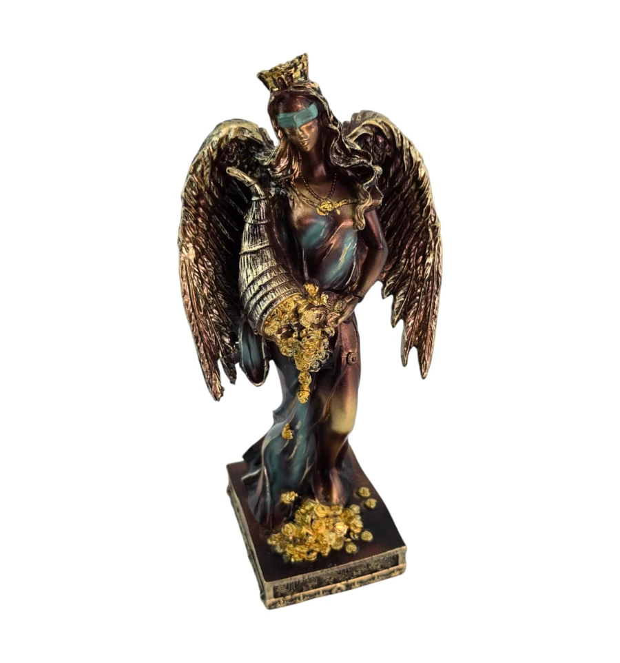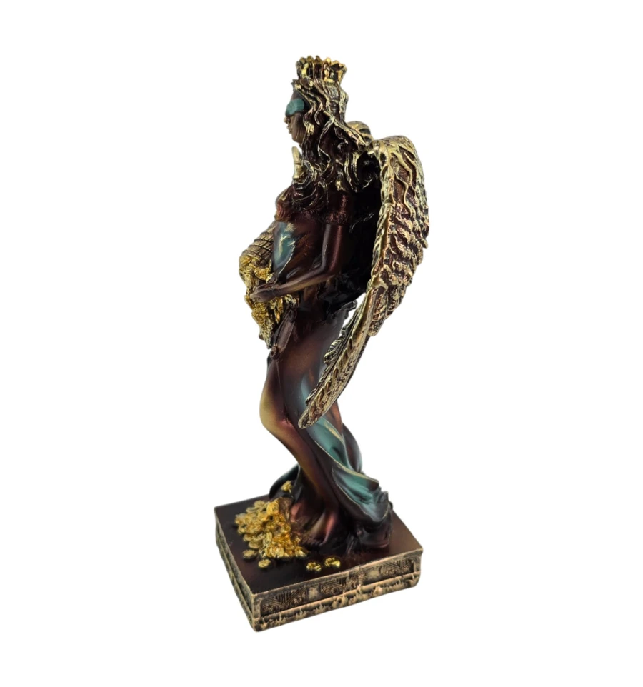 Элегантная статуэтка крылатого Ангела с короной и рогом изобилия, из которого сыплются золотые монеты. Символизирует защиту дома, привлечение благополучия и поддержку в делах. Уместна в квартире и офисе: на рабочем столе, каминной полке, в гостиной, у входной зоны или в «углу богатства» по фэн-шуй. Подойдёт как содержательный подарок на новоселье, открытие бизнеса и семейные праздники.