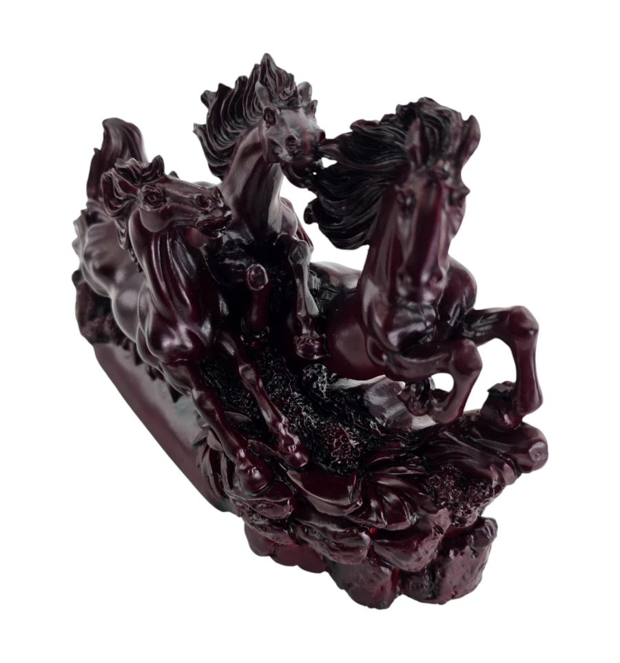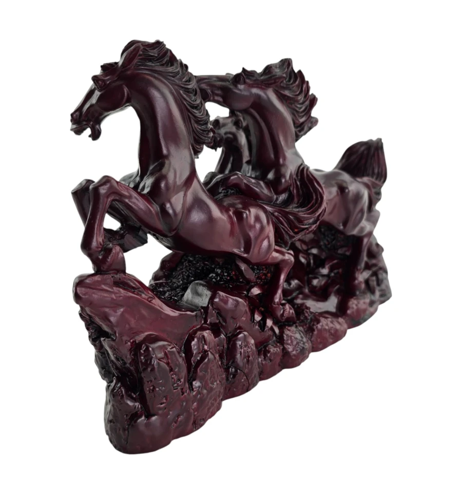 Декоративная фигурка трёх коней в стремительном движении. Бордовый оттенок с лёгким глянцем подчёркивает рельеф грив и скал. В фэн-шуй конь символизирует успех, быстрый рост и признание. Три коня усиливают энергию действий и командный импульс, их ставят в рабочей зоне или у входа, чтобы поддержать карьерный рывок и смелые планы. В украинской символике конь - народный тотем свободы и силы, благородства и верности, покровитель достатка и дальних дорог. Фигурка подойдёт как оберег для дома или офиса и как подарок тем, кто ценит символы победы. Возможны небольшие отличия от фото.