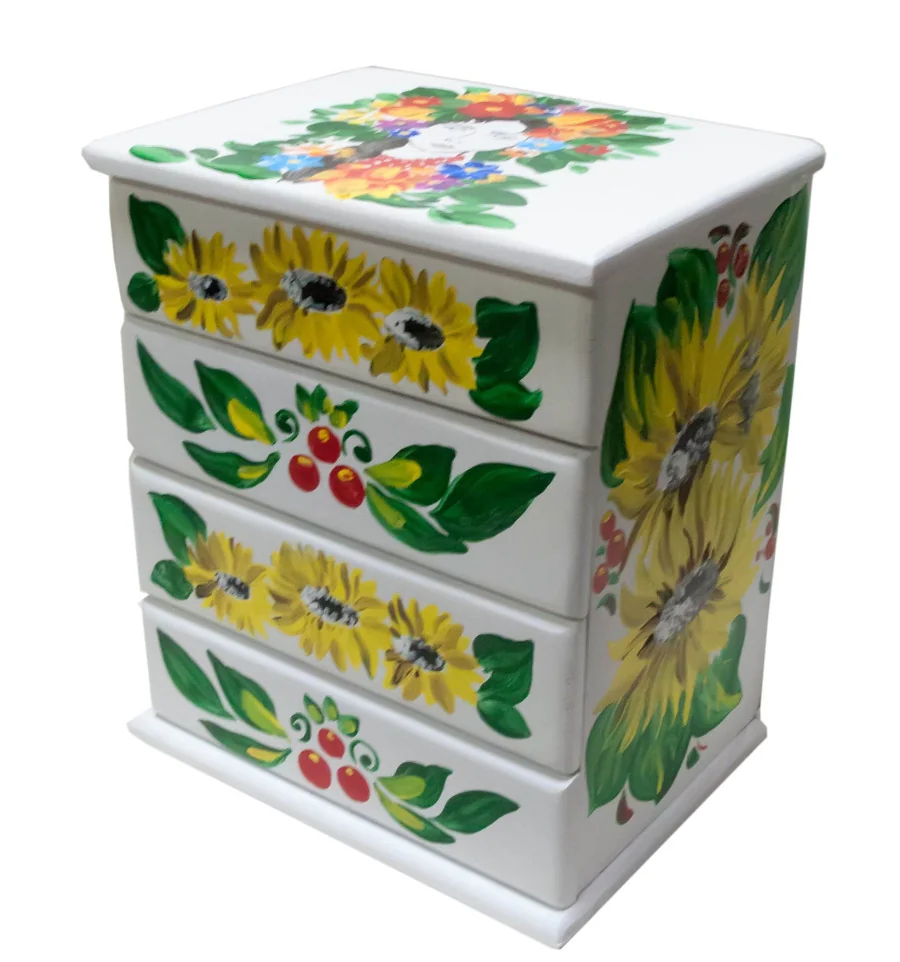 Шкатулка комод,«Украинка с подсолнухами», белая, расписано вручную, массив дерева (22.5×15×26 см)