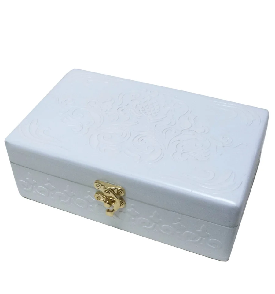Шкатулка белая «Кружева» массив дерева (20.5×12.5×8 см)