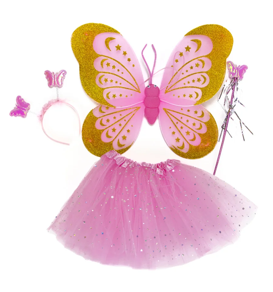 Дополнительные характеристики | Крылья - 50х38см, юбка из фатина - ширина в талии - 45 см, длина юбки - 30см, палочка - 35х7х1см, ободок - 22х21х1,5см |