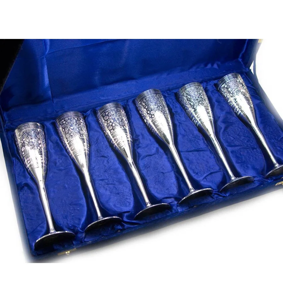Бокалы бронзовые посеребренные (н-р 6 шт.) (h-25 см) (55×27×9 см)