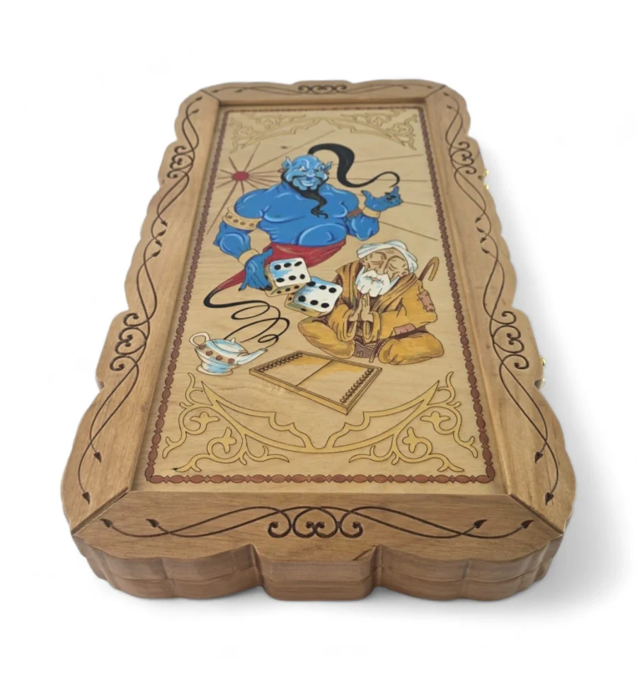 Погрузитесь в волшебный мир восточных легенд с нашими крафтовыми деревянными нардами "Джин". Каждая доска создана вручную с использованием высококачественного дерева и украшена мастерской резьбой и росписью.