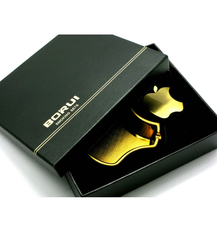 набор для курильщика, пепельница металлическая, зажигалка газовая, пепельница яблоко, подарок курящему, сувенир для офиса, набор в коробке, золотистый цвет, настольная пепельница, аксессуары для курения