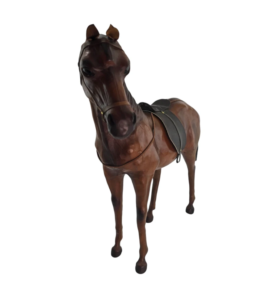 Объёмная фигурка коня из натуральной кожи станет заметным акцентом в доме или офисе. Стройный коричневый конь с седлом и лаконичной уздечкой хорошо передаёт форму тела и ощущение движения, поэтому фигурка выглядит живой и динамичной.
