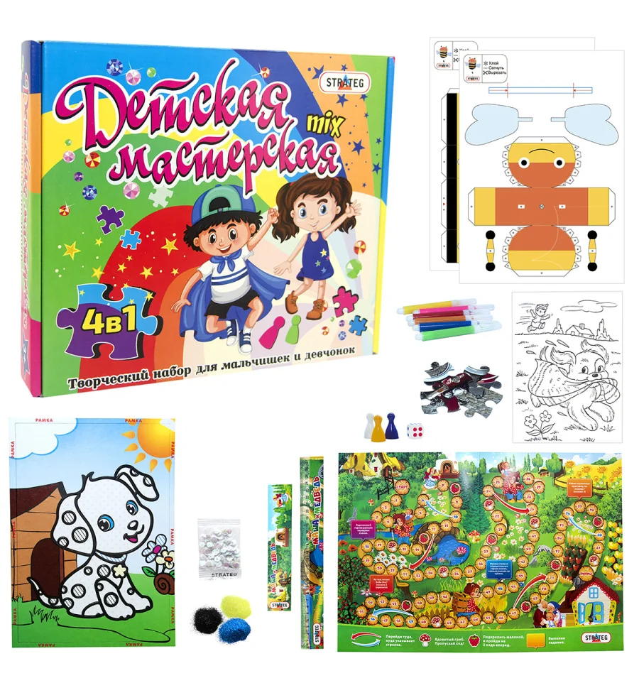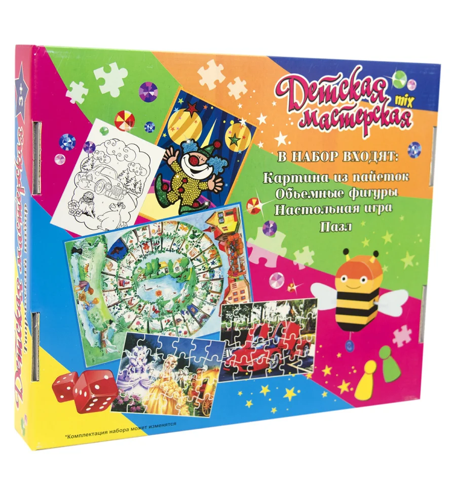 Комплектация | Настольная игра, пазл, картина из глиттера и пайеток, объёмная фигура |
