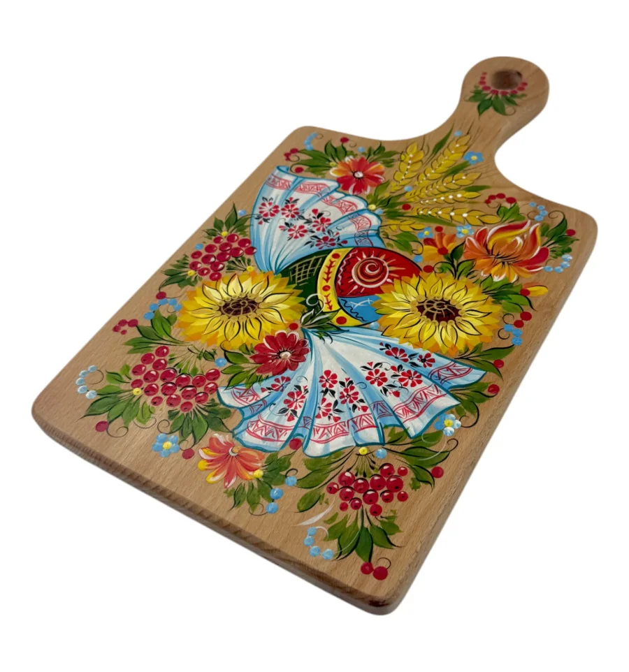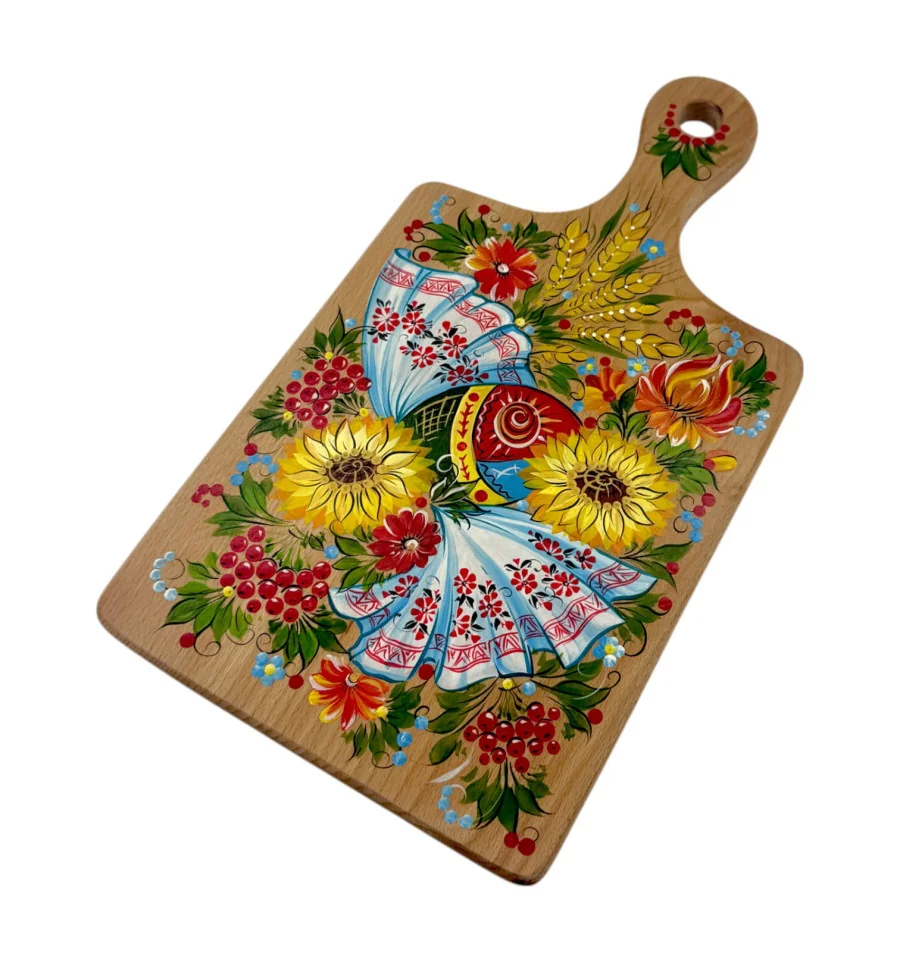 Уникальная роспись: каждое изделие создается вручную, поэтому рисунок может немного отличаться, что делает каждую доску неповторимой.