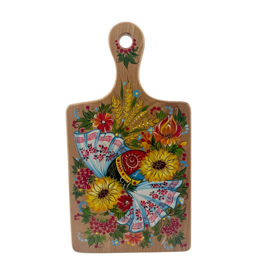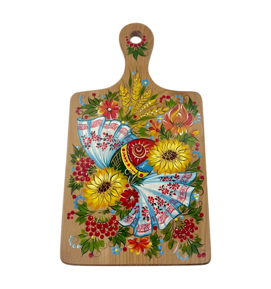 Почувствуйте тепло солнечных лучей с этой изысканной разделочной доской из бука, украшенной утонченной ручной росписью. Каждый мазок наполнен теплотой и гармонией, создавая неповторимый узор, который привнесет в вашу кухню нотки уюта и вдохновения.
