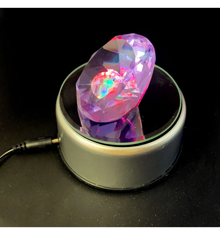 Подставка вращается плавно, что создает впечатляющий эффект для вашего кристалла. Ваш камень будет словно танцевать на подсветке.