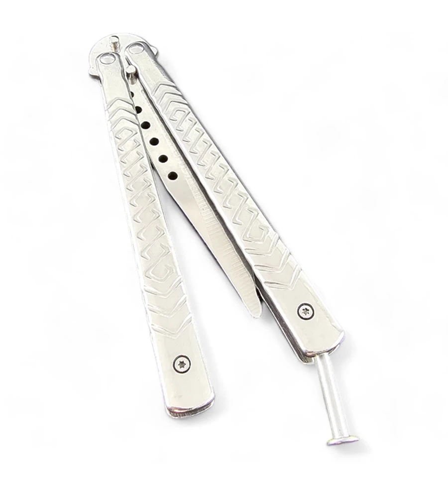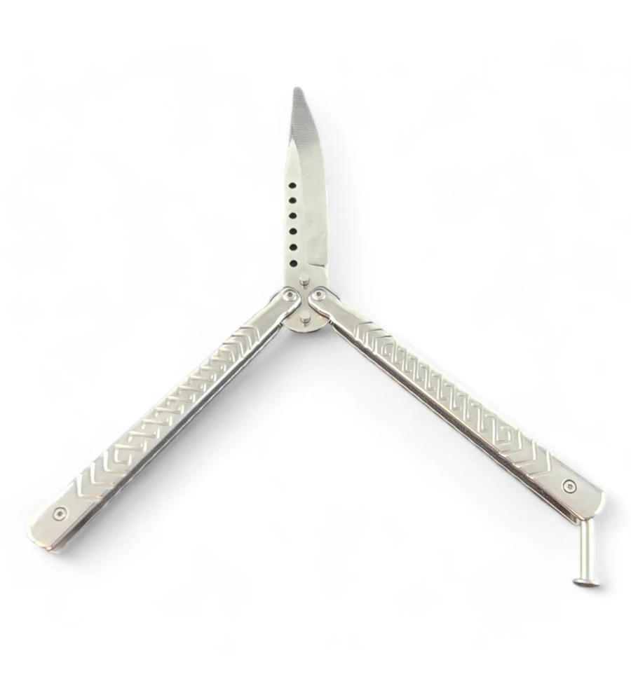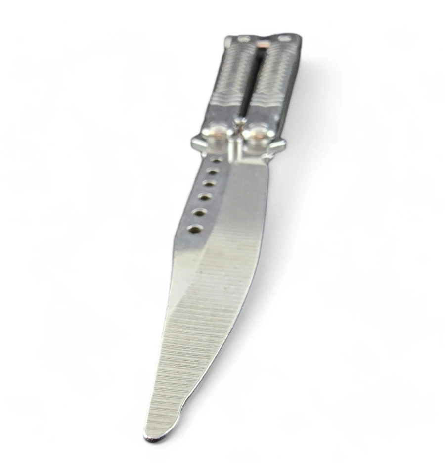 Очаровательный и стильный, балисонг "Серебристый Вихрь" - это нож, который сочетает в себе эстетику и функциональность. Созданный для настоящих ценителей инструментов, этот нож обладает исключительной привлекательностью и непревзойденным мастерством.
