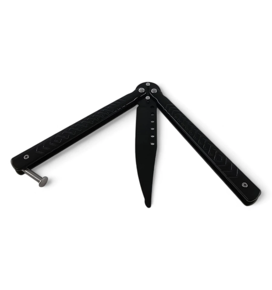 Очаровательный и стильный, балисонг "Черный Вихрь" - это нож, который сочетает в себе эстетику и функциональность. Созданный для настоящих ценителей инструментов, этот нож обладает исключительной привлекательностью и непревзойденным мастерством.