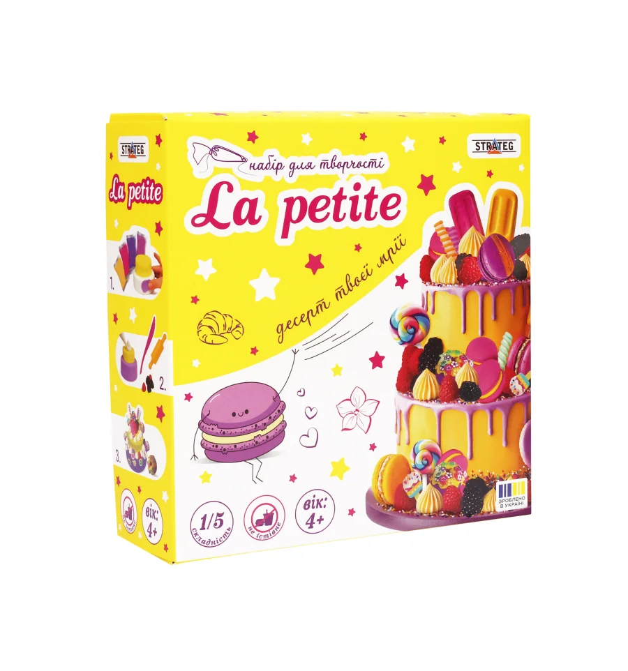 La petite Ягодный микс, арт. 30791Превратите вечер в увлекательное кондитерское шоу! С набором «La petite» ваш ребенок создаст невероятно реалистичный двухъярусный торт, украшенный сочными ягодами, макарунами и кремовыми завитками. Это идеальный способ совместить игру с развитием художественных способностей и воображения. Благодаря детальному набору инструментов и пошаговой инструкции даже самые маленькие мастера смогут почувствовать себя настоящими профессионалами.Возраст: 4+Размер коробки: 19,7 x 20 x 6,5 смВес: 292 гКомплектация: картонная коробка, воздушный пластилин – 8 шт., пенопластовая основа, мусс с насадкой, декор, скалка, инструмент, инструкция.
