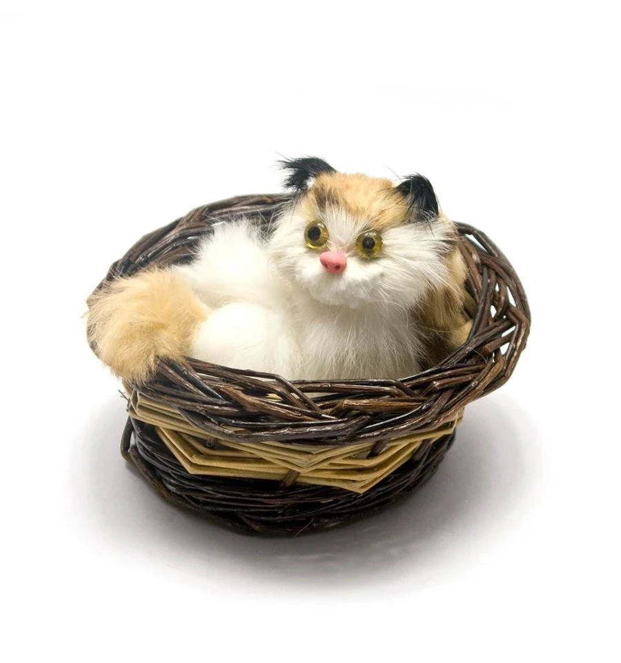 Кошка в лукошке (мяукает) (12×10×9 см)