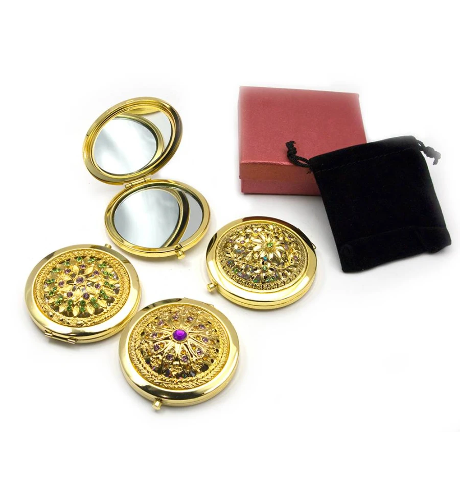 Зеркальце косметическое «Узор с камнями» золото (d-7 см) (в коробке + чехольчик) купить в интернет магазине подарков ПраздникШоп