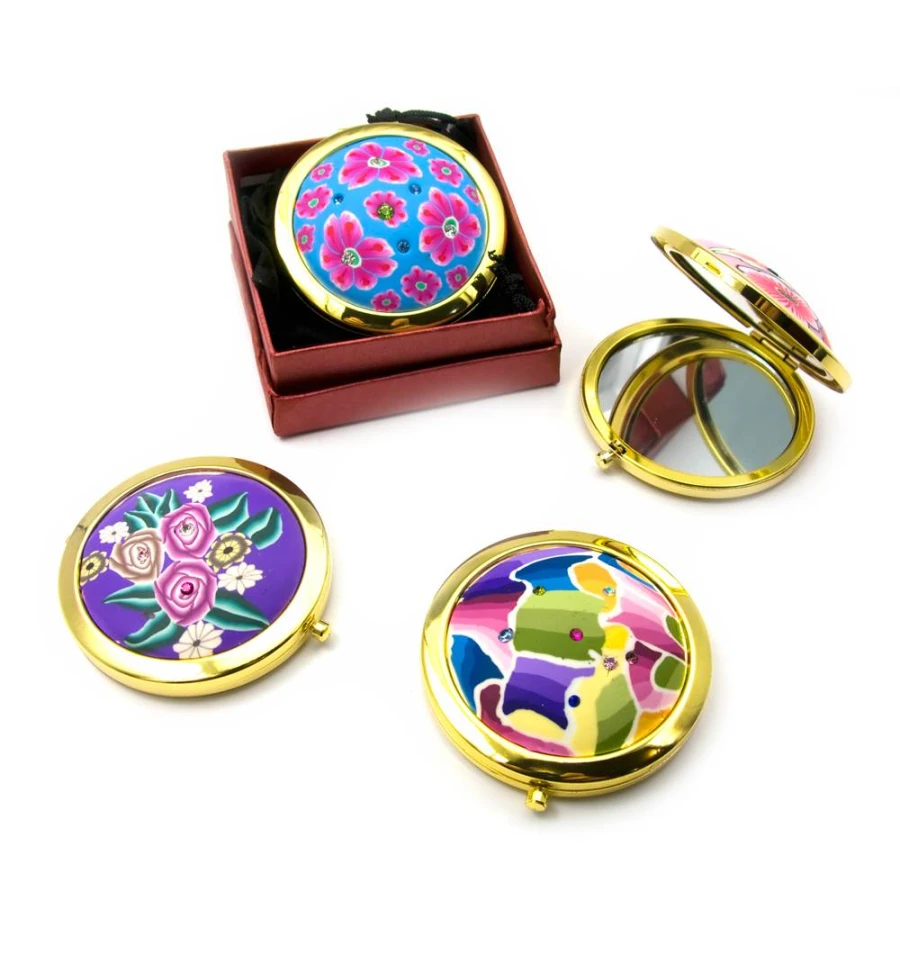 Зеркальце косметическое с рисунком золото (d-7 см) (в коробке + чехольчик) купить в интернет магазине подарков ПраздникШоп