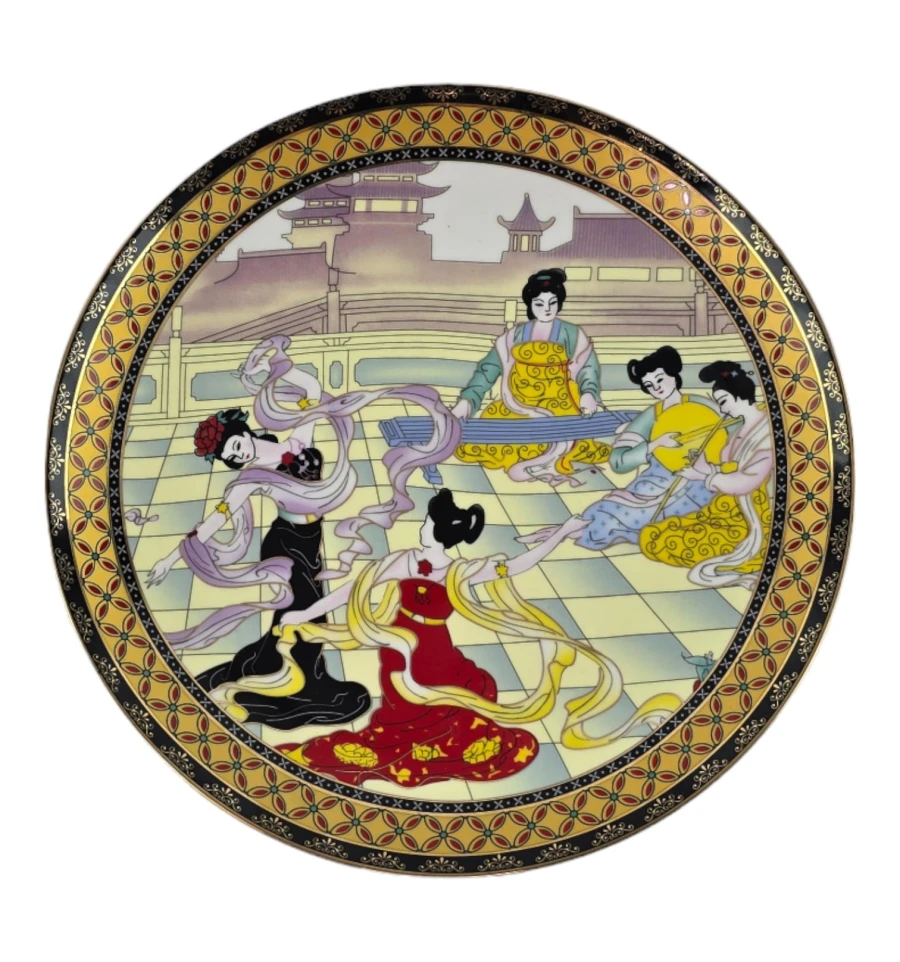 Эстетичный дизайн: Яркий рисунок гейш, выполненный в традиционном японском стиле, делает тарелку настоящим произведением искусства.