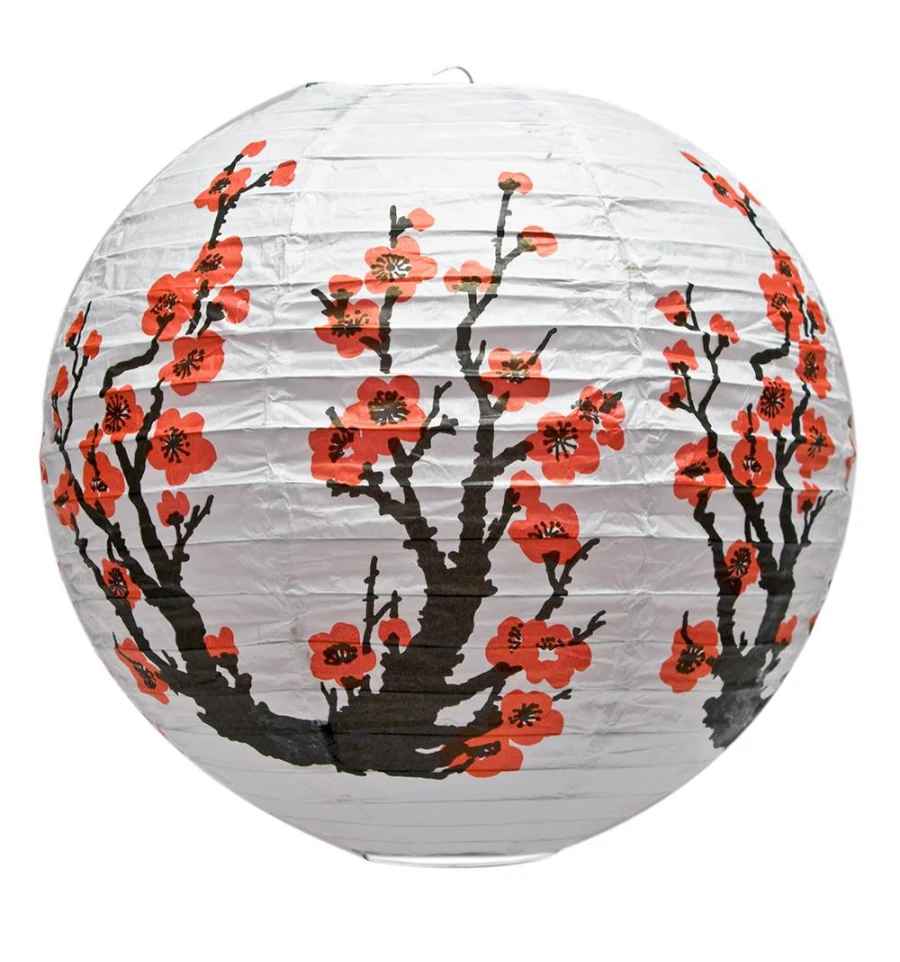 Фонарь белый бумажный "Сакура" диаметром 40 см - это прекрасный декоративный элемент, который придаст вашему пространству изящество и нежность.