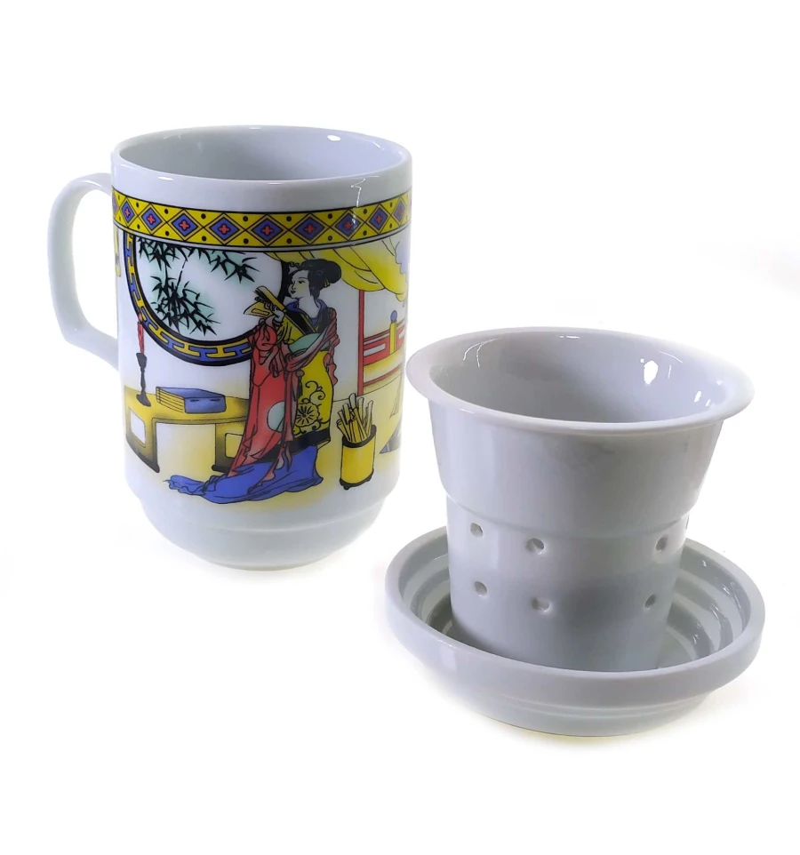 Чашка заварочная с ситом (330мл) (BFC24) «3 девушки» (h-13 см, d-7.5 см)