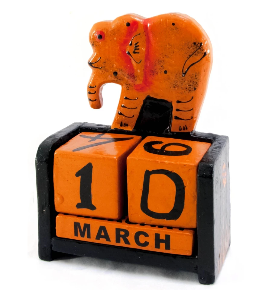 Вечный календарь «Слон» дерево черный (15×10×5 см)