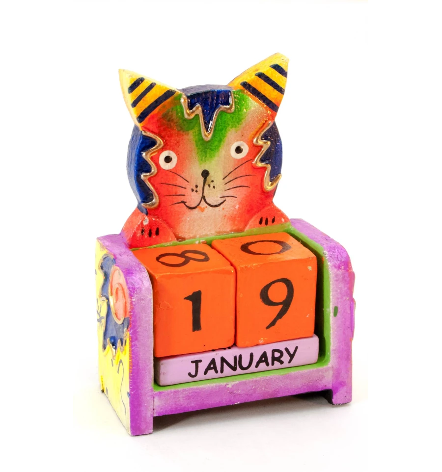 Вечный календарь «Кот» дерево (10×7×4 см) купить в интернет магазине подарков ПраздникШоп
