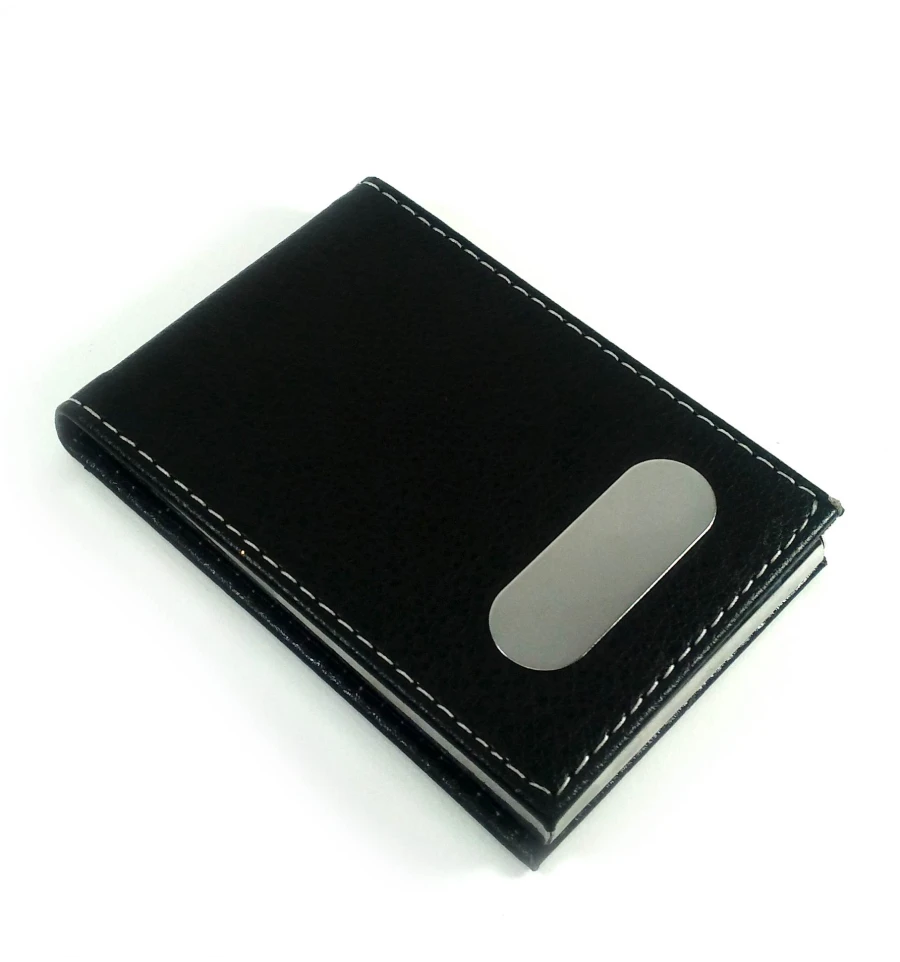 Визитница черная кожаная с магнитным замком на 15 визиток (9х6,5х1,5 см)