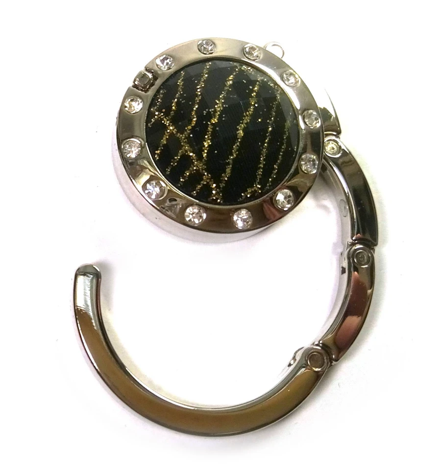 Сумкодержатель для женской сумочки «Кристалл черно-золотой» с зеркальцем (d-4.5 см)