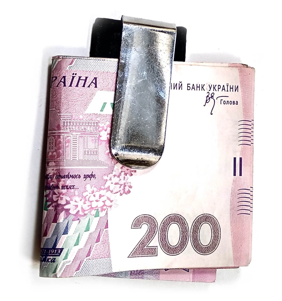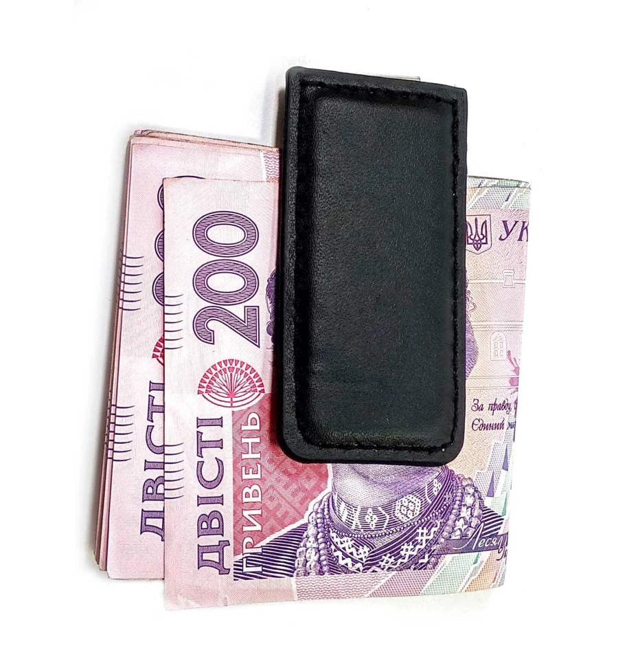 Зажим для денег металл-кожа (7.5×3.5×0.5 см)